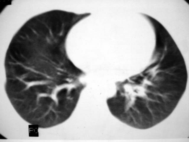 早产儿,幼时体弱,常感冒肺部感染,13岁后好转。两月前“感冒”后咳嗽两周。