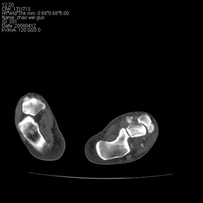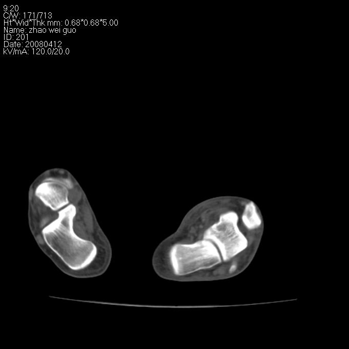 以下是引用zhangzhongshou在2008-4-12 21:01:00的发言:[br]左侧跖跗骨多发骨折.请结合平片进一步定位。[br]