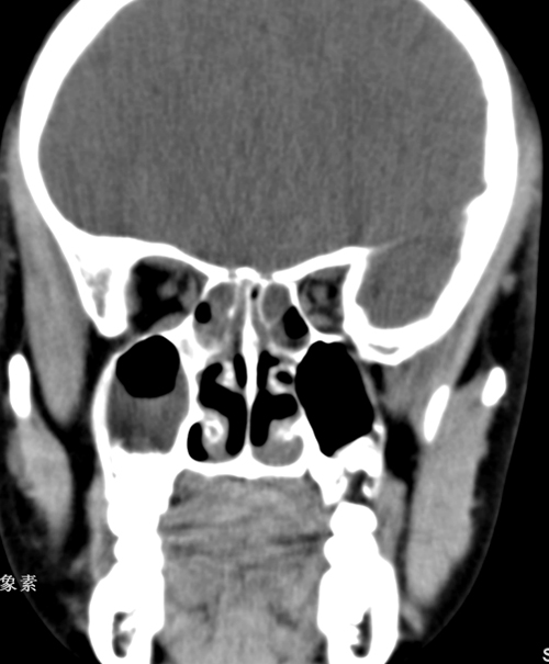 全组副鼻窦炎症。右侧上颌窦囊肿。