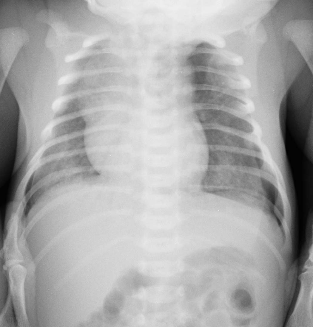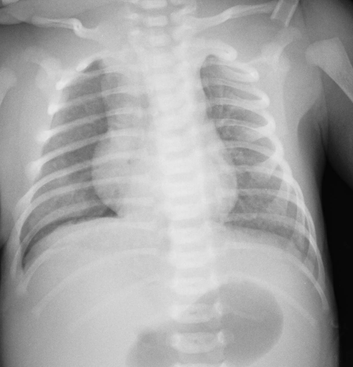 患者,男婴,生后7小时,全身发绀,呼吸急促。