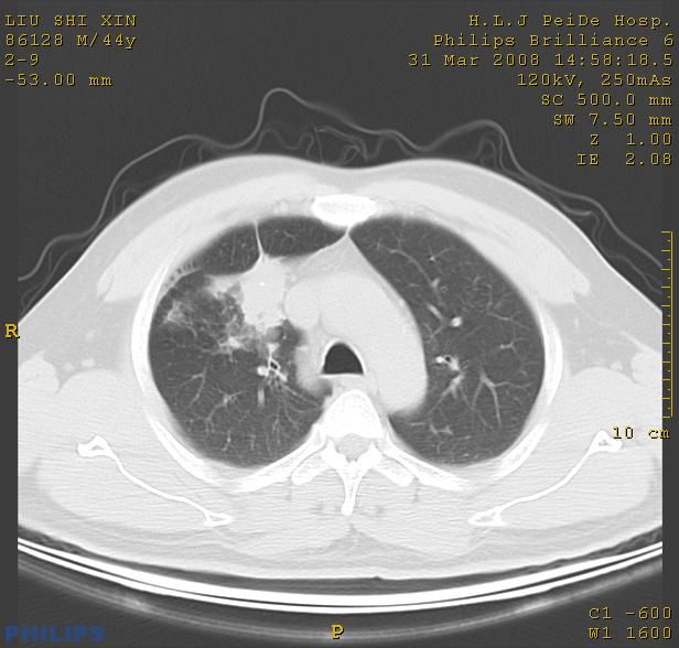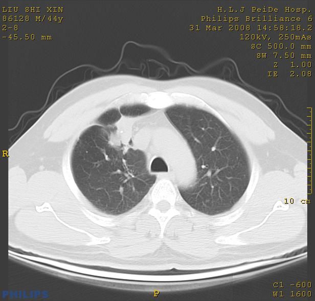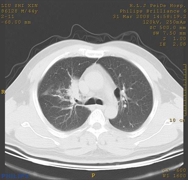 以下是引用形影不离在2008-4-27 14:15:00的发言:[br]中心型肺癌并阻塞性肺炎、两肺及胸膜多发转移。[br]
