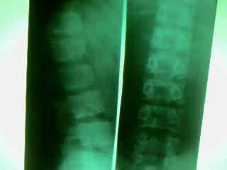 以下是引用yangyudong333在2008-4-27 22:15:00的发言:[br]支持椎骺骨软骨病[br][br]又称青年性脊柱后凸.青年圆背和椎骺炎等[br]好发年龄:本病常见于12~18岁的青少年,男性较女性多.[br]好发部位:病变为多发性,常发生于下部胸椎和上部腰椎.[br]临床表现:最初症状是腰背疼痛,而后继发脊椎间隙后凸 ,但无成角畸形!~[br][br]x线表现:[br]1.骨骺骨化不良,有疏松.节裂.密度增高.边缘不规则等表现[br]2.椎体有程度不同的楔状变殂,继发脊柱后凸畸形[br]3.椎体前缘呈梯形,这种表现是因为骺板前端骨化不良所致,以前上缘表现较明显[br]4.椎体的上.下缘出现我舒茂氏结节,即椎体上.下缘向内的碟形凹陷,边缘较致密.[br]5.椎间隙正常或稍加宽[br]6.恢复期,椎骺与体联合.椎隙变窄,椎体变形及永久性驼背,常合并脊椎增生性骨关节病[br]