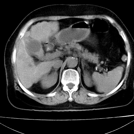 现在看看肝右叶内圆形低密度影你们考虑什么呢?