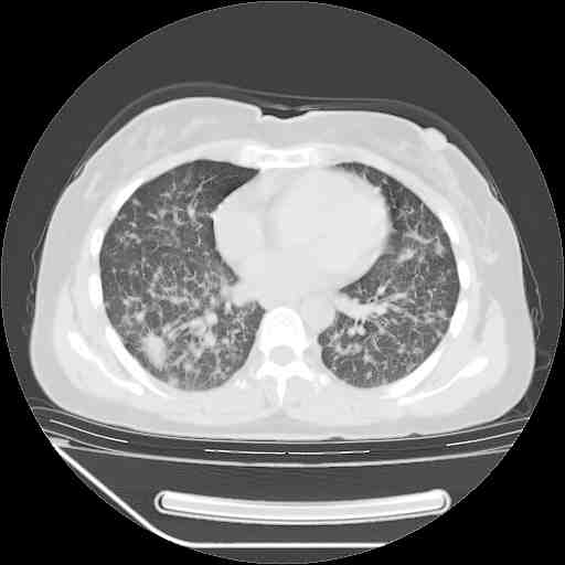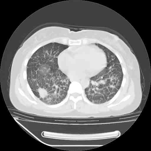 支持肺癌并肺内淋巴管炎, 原发灶小了,但转移较前片明显了.
