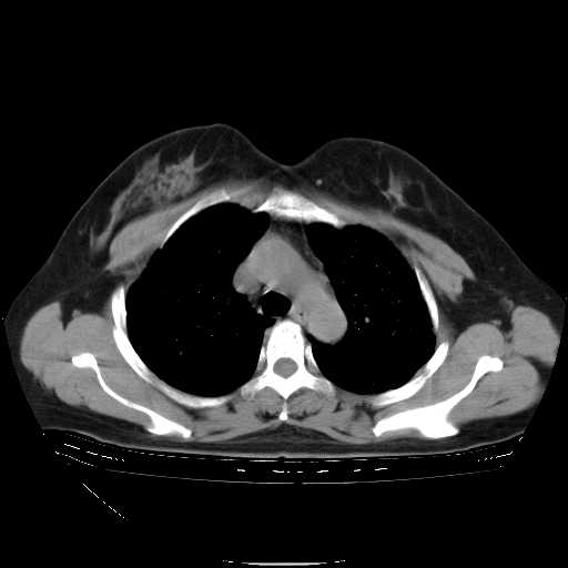 支气管血管束粗而乱,考虑肺癌肺内淋巴管转移,右侧乳房第一二层软组织成份较左侧多,不会有问题吧?