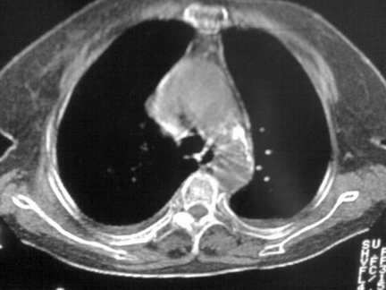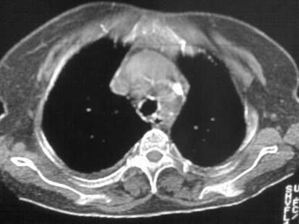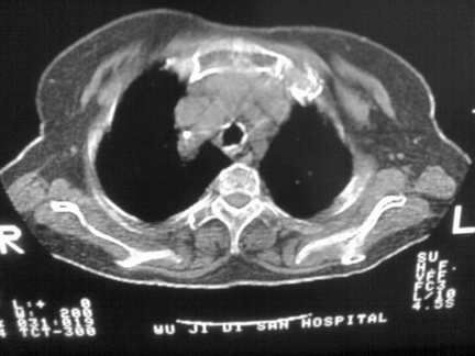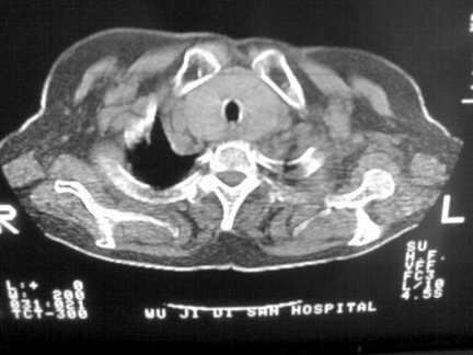 胸内甲状腺肿;右肺感染;双侧胸腔少量积液。