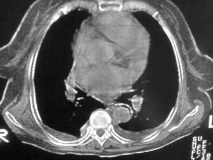 胸内甲状腺肿;右肺中叶感染;双侧胸腔少量积液;心影增大,考虑有心功能不全。