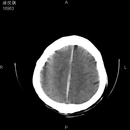 以下是引用形影不离在2008-5-1 11:32:00的发言:[br]支持 硬膜下血肿伴蛛网膜下腔出血,建议短期复查。