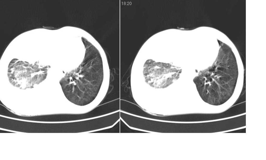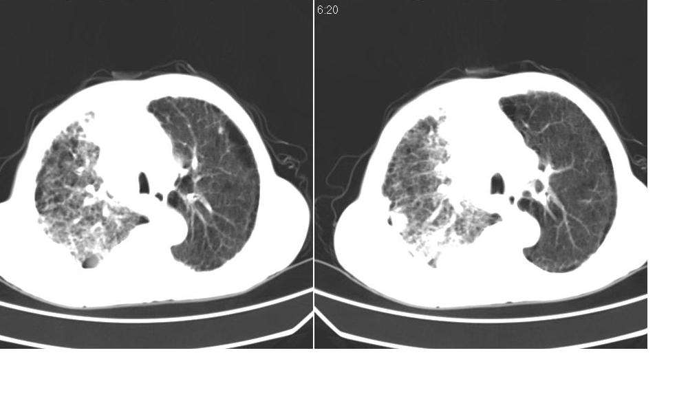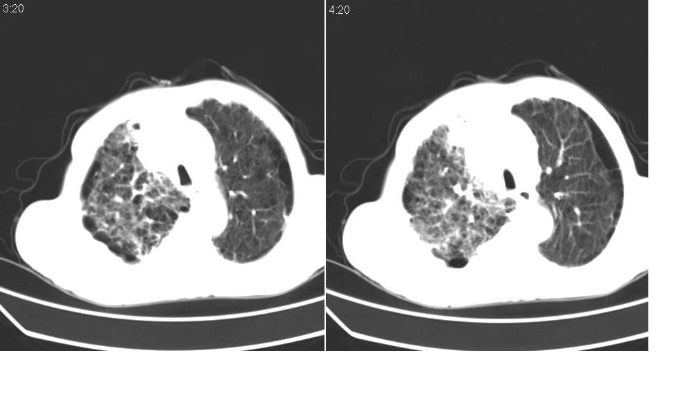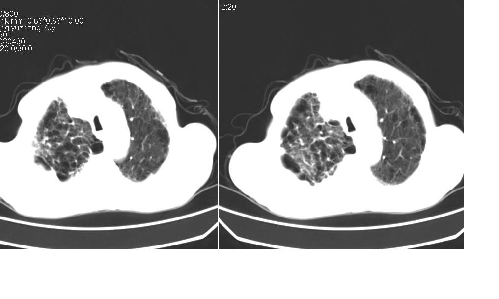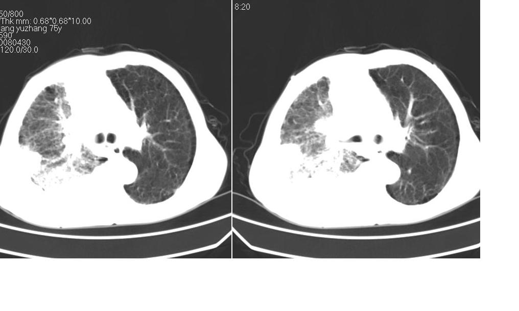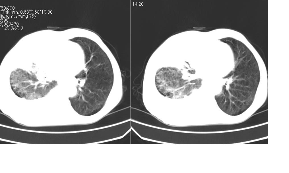 以下是引用mzh123在2008-5-3 21:12:00的发言:[br]本人持有不同观点[br]1、右肺似有团块表现,但只有一个层面,所以本人认为还是以片为主,所以不能首先考虑肿瘤[br]2、右肺普遍成纤维化改变 并伴有片状炎症改变,和癌性淋巴管炎表现不同[br]3、所以本人认为是间质纤维化伴感染可能大 及胸腔积液