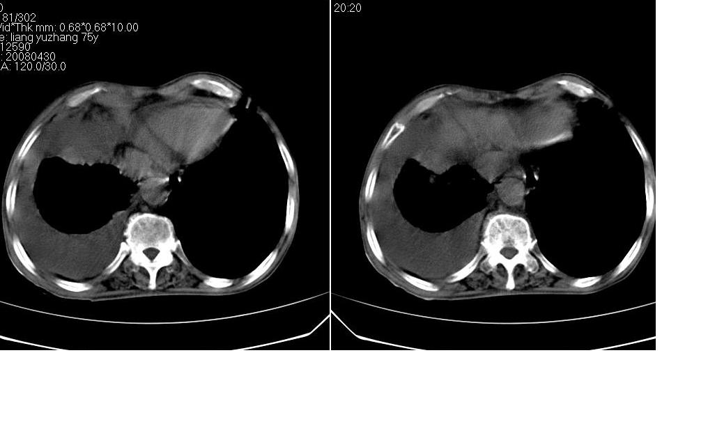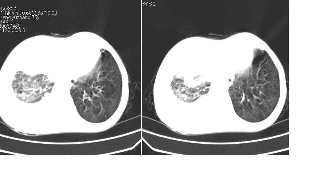 以下是引用zsl6918在2008-5-3 19:53:00的发言:[br]右肺中心型肺癌并纵隔淋巴结转移,胸膜转移,右肺癌性淋巴管炎。