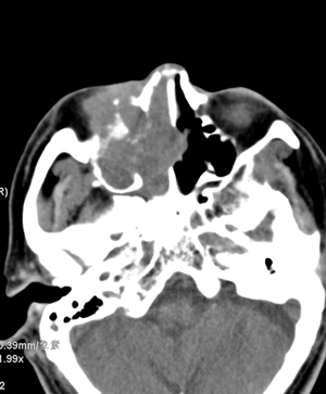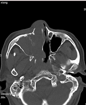 以下是引用peijunlong在2008-5-4 13:35:00的发言:[br]考虑右侧鼻腔内翻性乳头状瘤[br]好发:中老年人。[br]ct:1:一侧鼻腔内肿块经扩大的自然孔道长入鼻窦,是其顺自然孔道蔓延的特点[br] 2:鼻腔,鼻窦扩大,窦壁压迫性骨质破坏。[br] 3:广泛生长的肿瘤可侵犯邻近结构,如眼眶、翼腭窝和颅内。