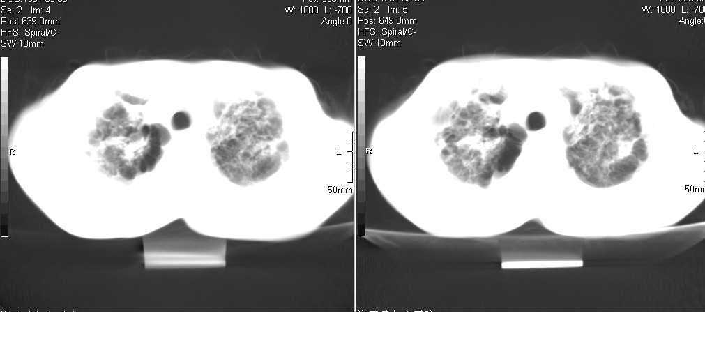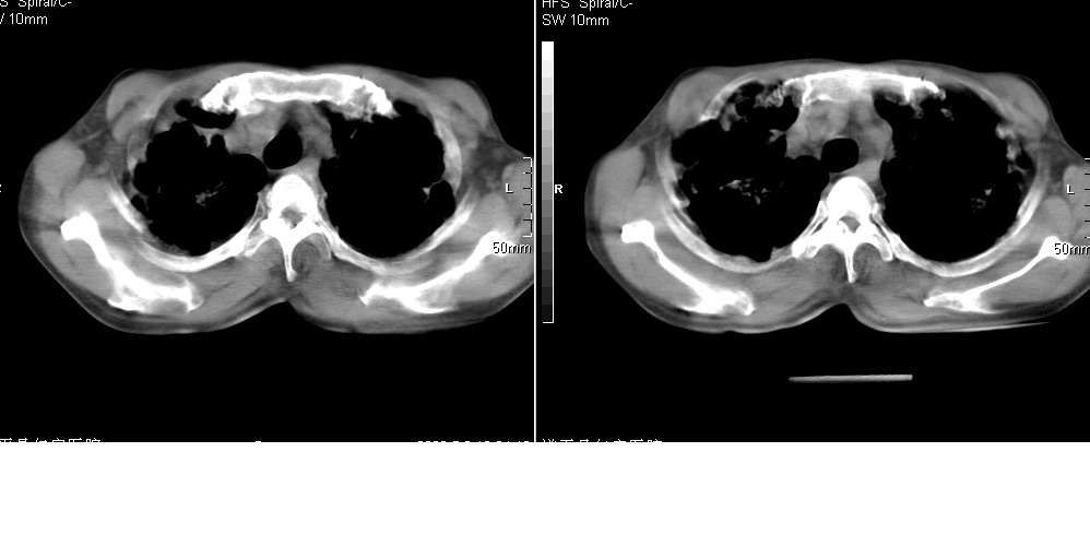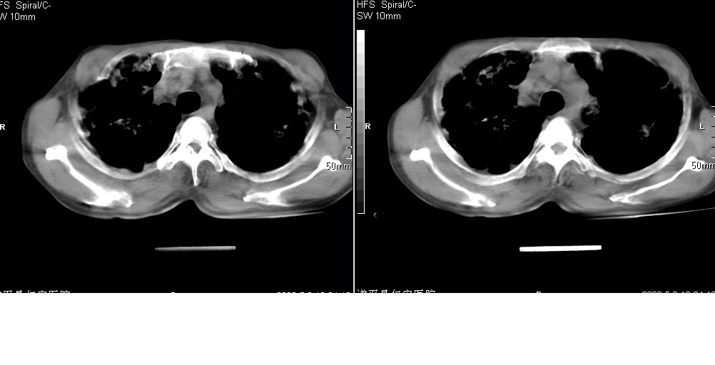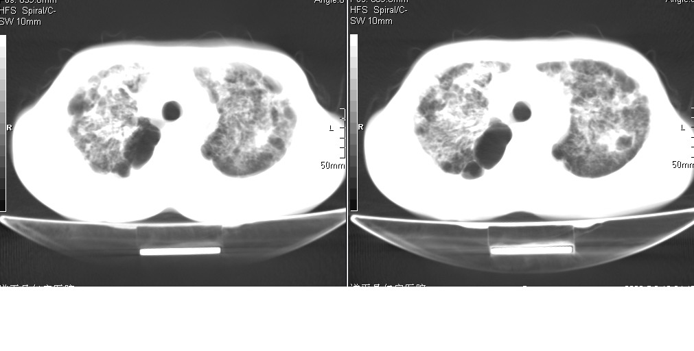 以下是引用光线在2008-5-6 18:36:00的发言:[br]双肺结核(左上肺空洞形成)、间质性改变合并感染,右肺大泡;右侧胸膜增厚。