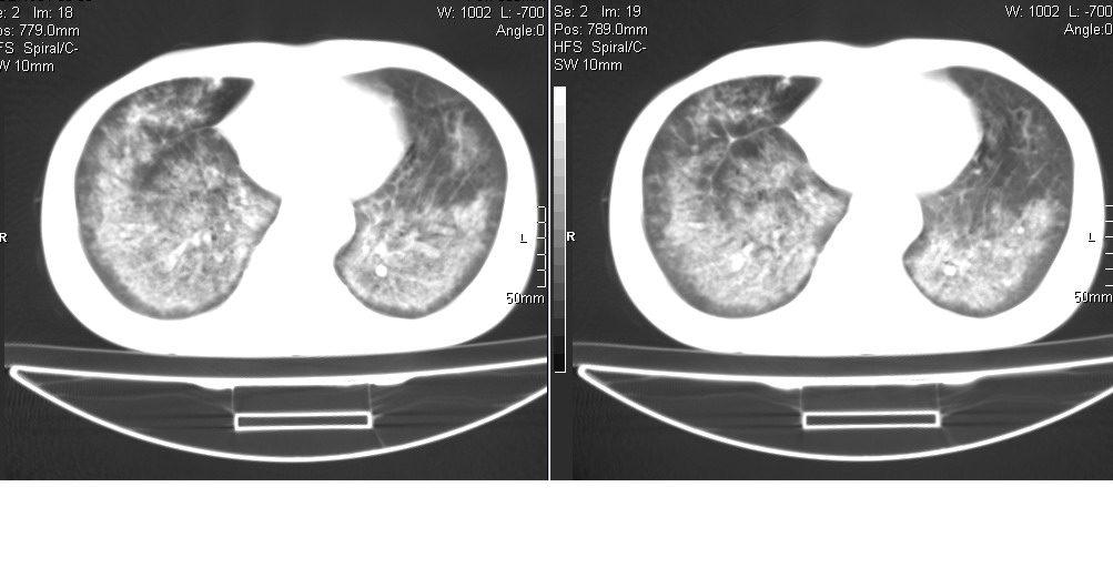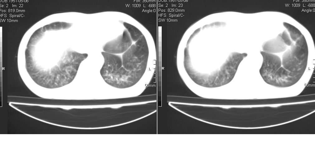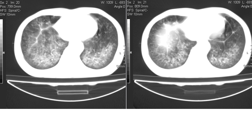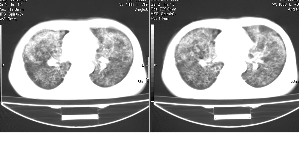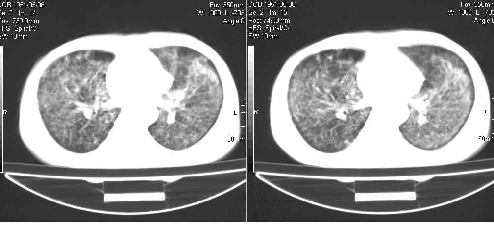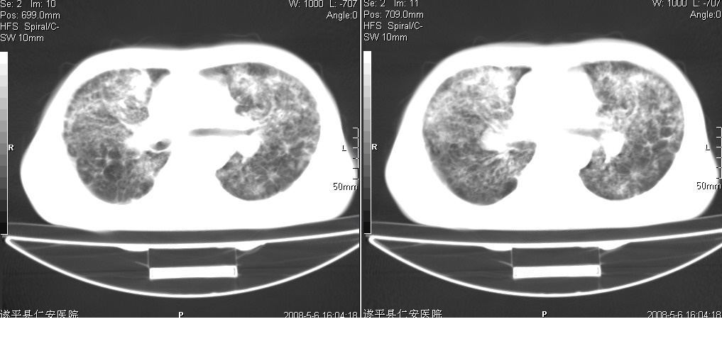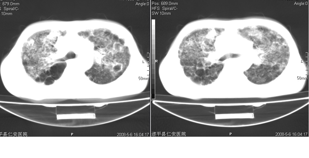 以下是引用zsl6918在2008-5-7 1:54:00的发言:[br]首先肺泡蛋白质沉着症,其次考虑机遇性感染。