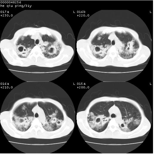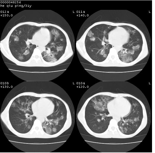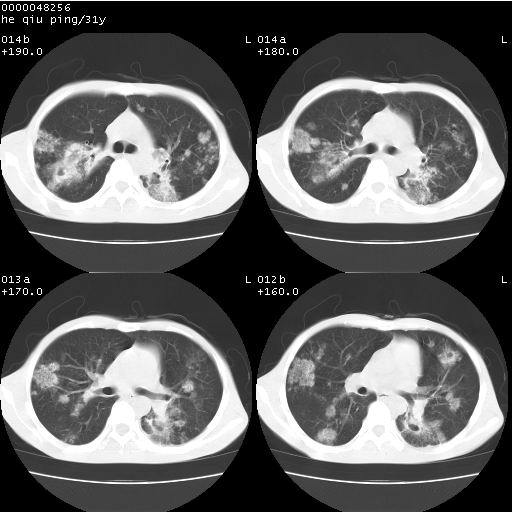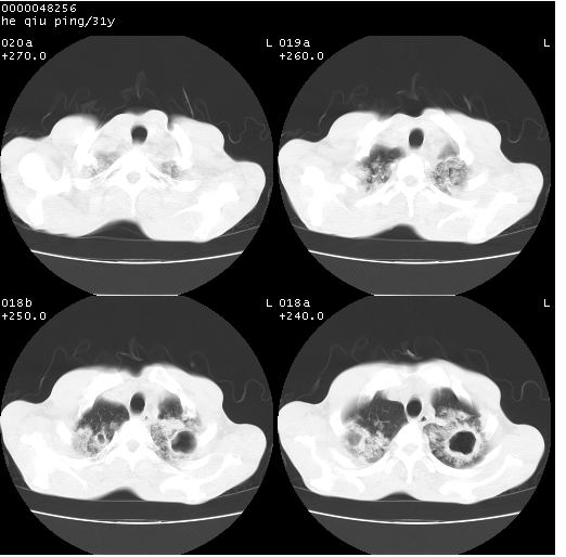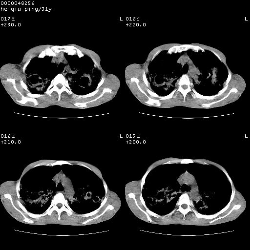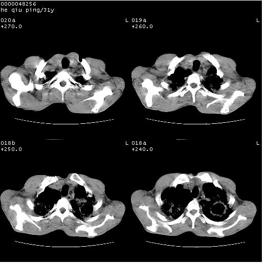 以下是引用liangshusheng在2008-5-11 22:21:00的发言:[br]肺结核伴空洞形成,两下肺支气管播散
