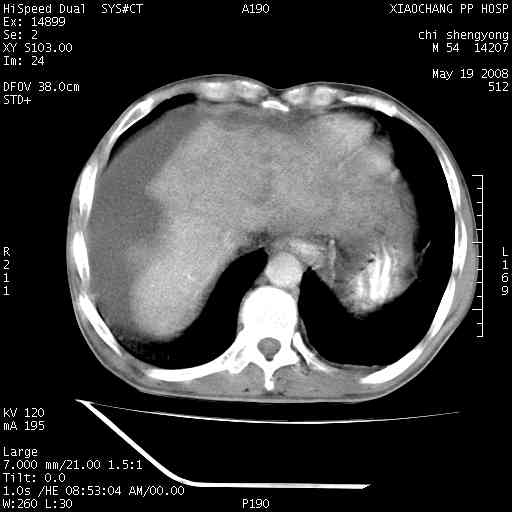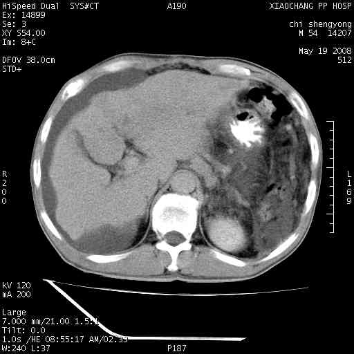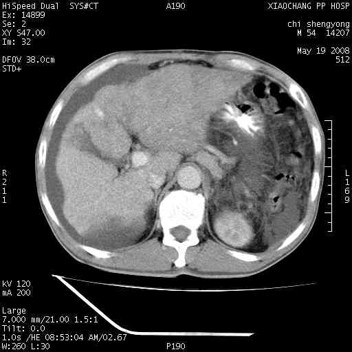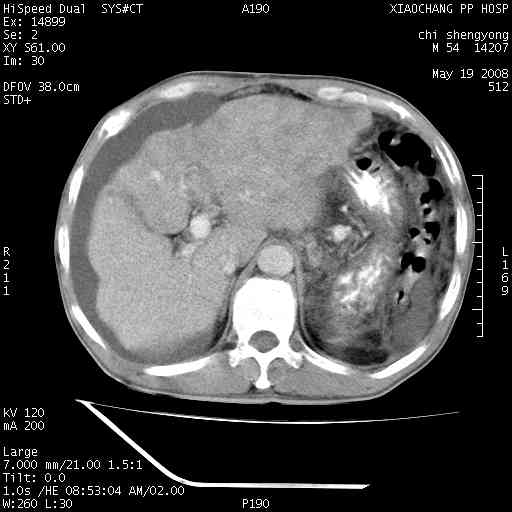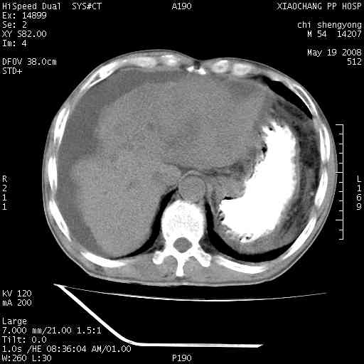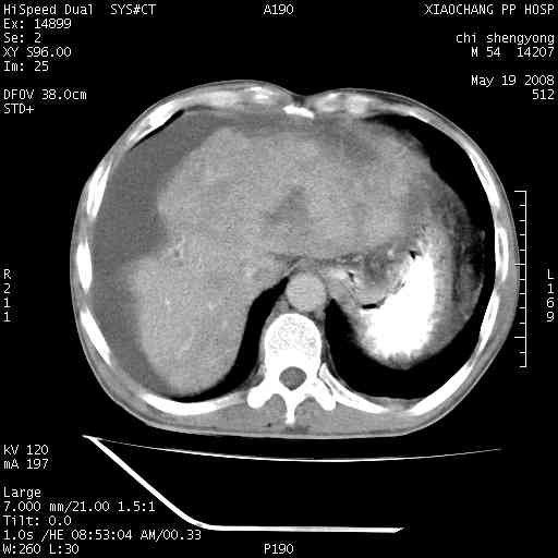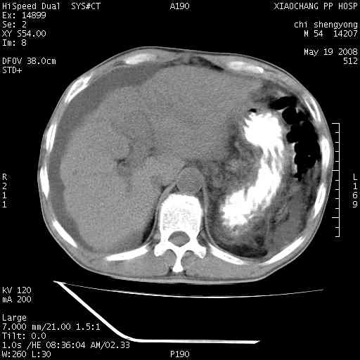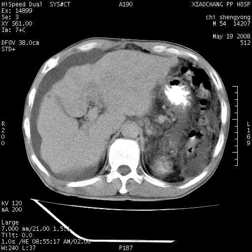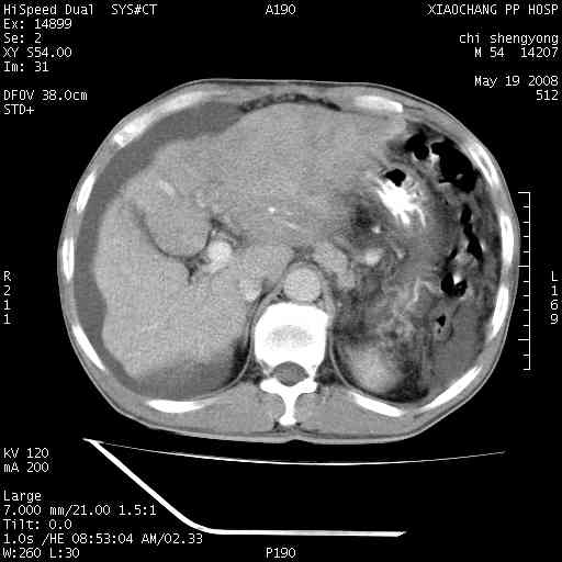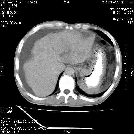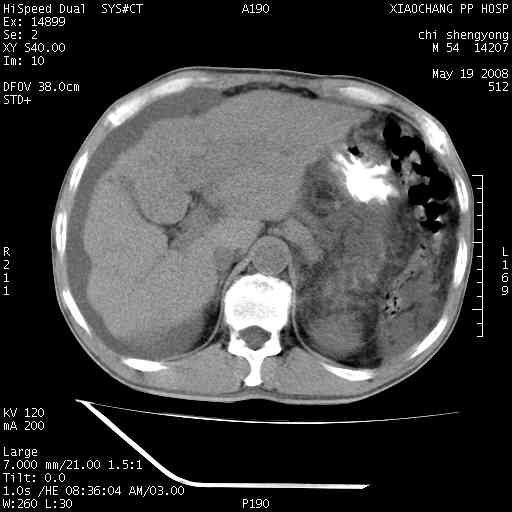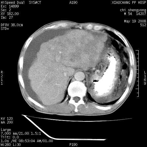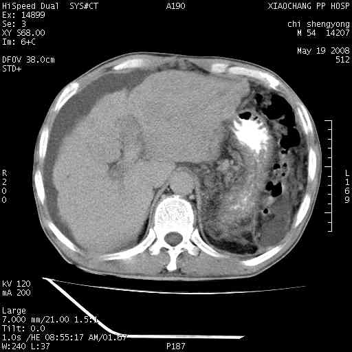以下是引用zjzjr在2008-5-21 10:52:00的发言:[br]肝左叶巨块型肝癌伴门静脉左支瘤栓形成.肝硬化、腹水,胃底静脉曲张,脾术后改变。