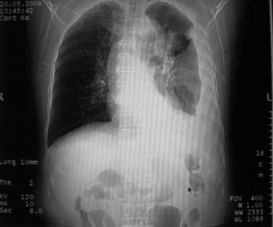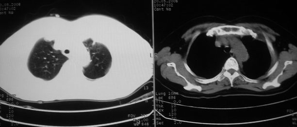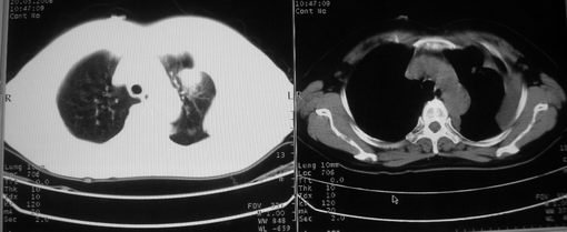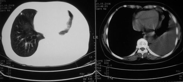 以下是引用w_jianhua在2008-5-22 12:59:00的发言:[br]1.左肺上叶肺癌并左侧胸腔积液可能性大。2不除外支气管内膜结核并包裹性胸腔积液,建议支气管镜检3.左肺下叶肺大泡,肺气肿
