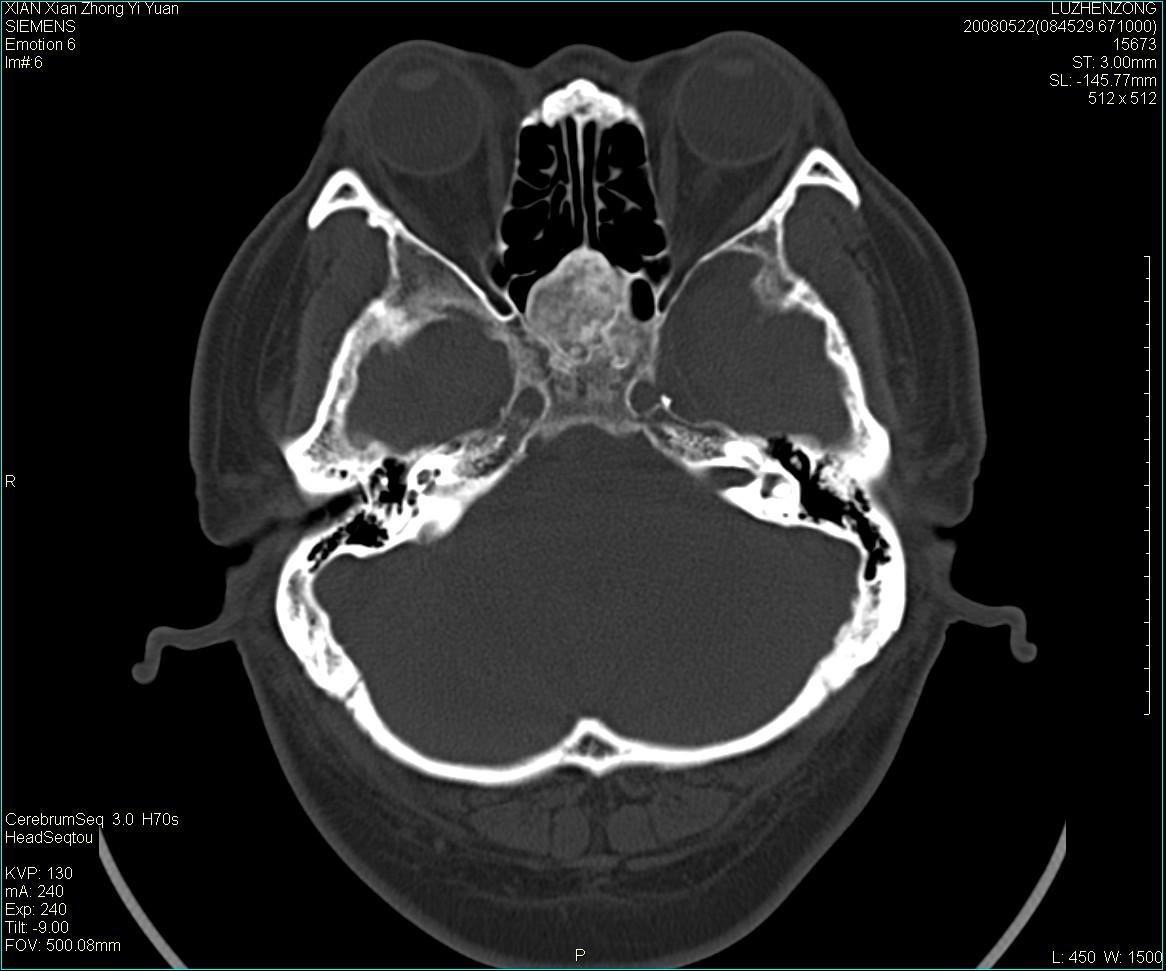以下是引用gaoshengjiang在2008-5-28 19:06:00的发言:[br]考虑来源于蝶骨前床突区骨软骨瘤。