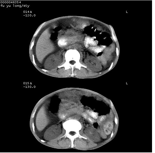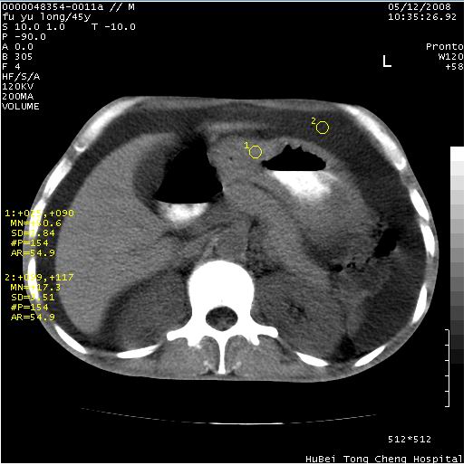以下是引用医影拾贝在2008-5-30 2:38:00的发言:[br]气肿性胃炎、胃十二指肠溃疡、腹膜炎,考虑穿孔可能性较大