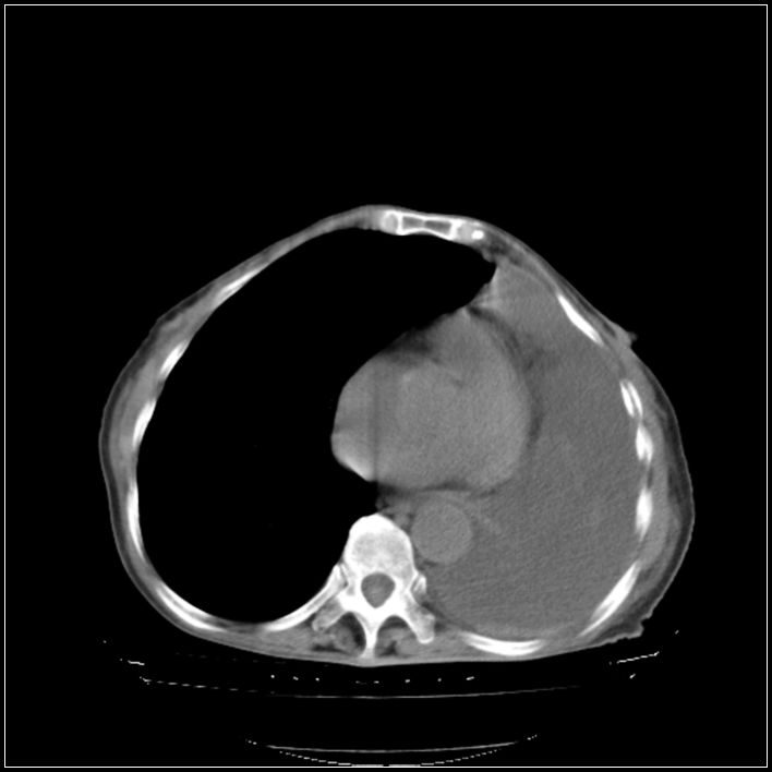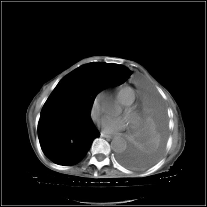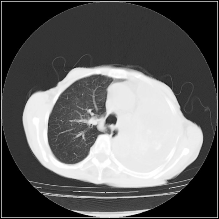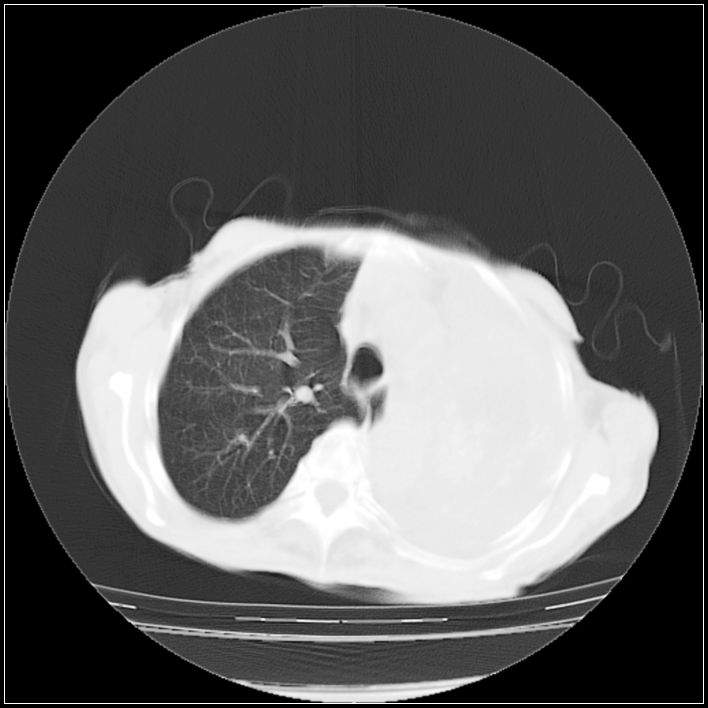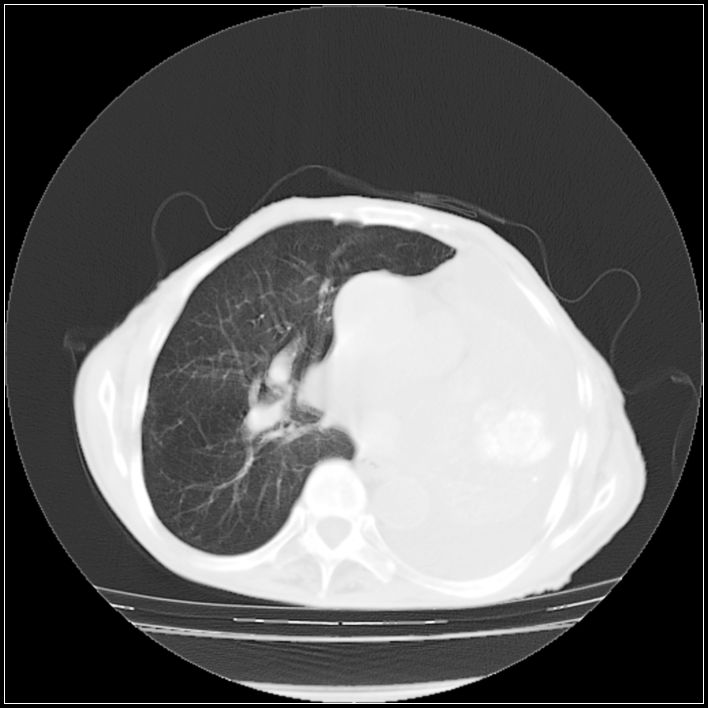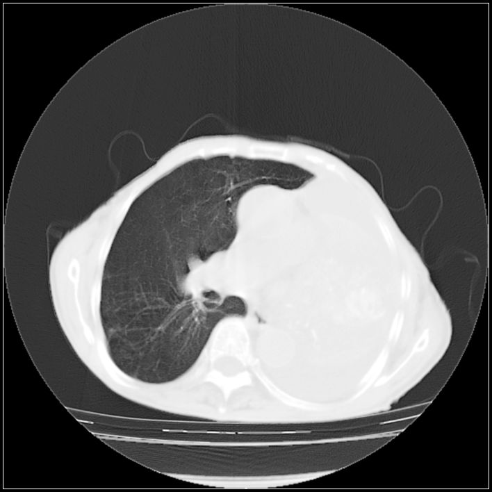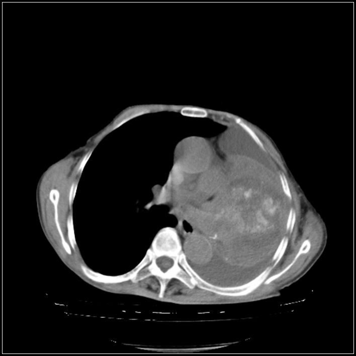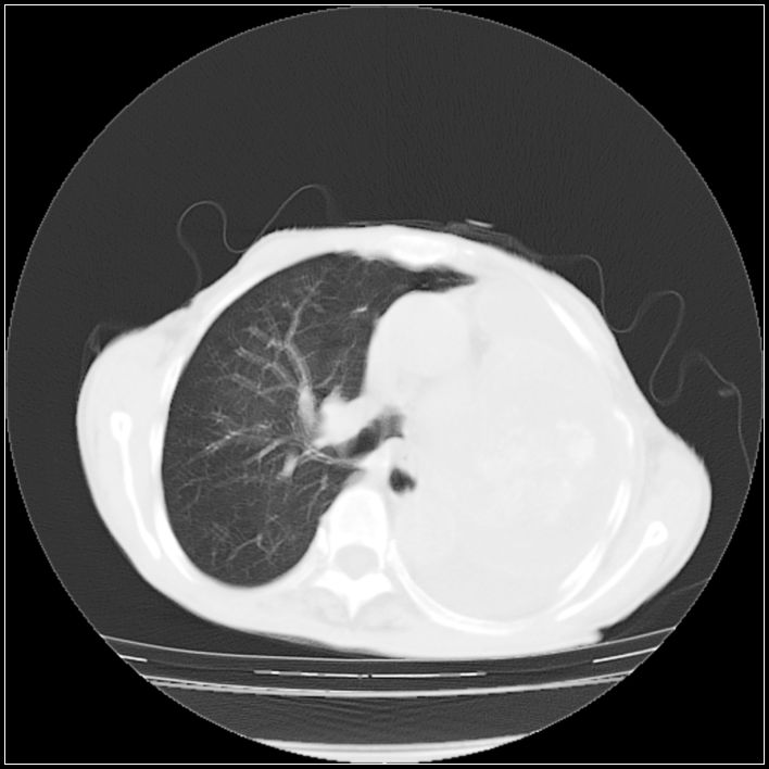 以下是引用影象小辈在2008-5-31 16:25:00的发言:[br]左侧胸腔团状不规则致密影,界欠规整,密度不均匀,其内可见更低密度影及高密度影,并可见包裹性胸腔积液 考虑为1.畸胎瘤 2.肺癌