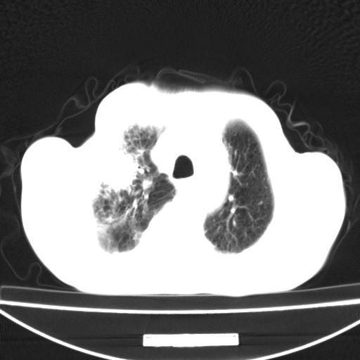 患者男80岁,反复咳嗽多年,咳喘伴咯血1月