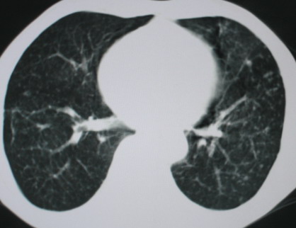 以下是引用医影拾贝在2008-6-3 18:48:00的发言:[br]双上肺弥漫性小结节影,纵隔窗内钙化淋巴结影,考虑血播性tb可能性较大,不除外肺ca可能
