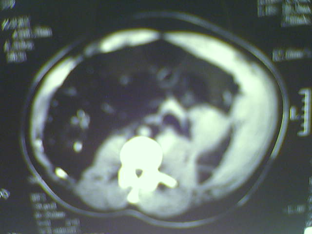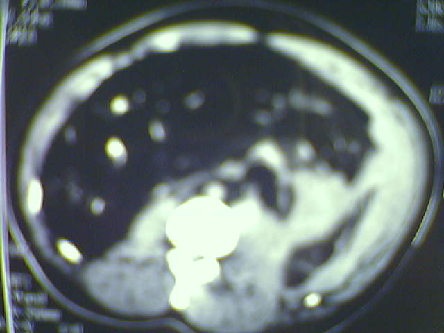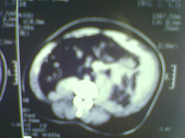 以下是引用lxq2000在2008-6-3 22:28:00的发言:[br]腹腔积液,腹壁软组织及左侧腰大肌肿胀建议mr检查。