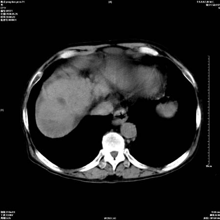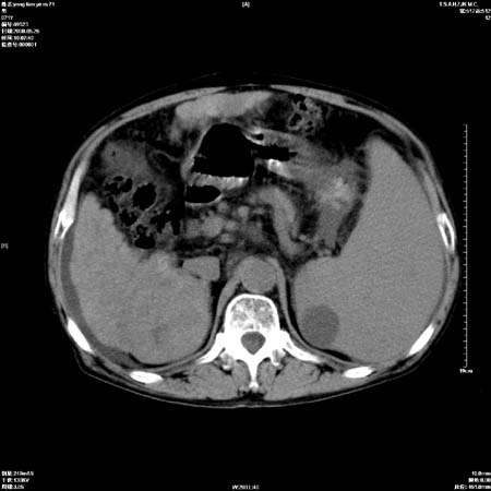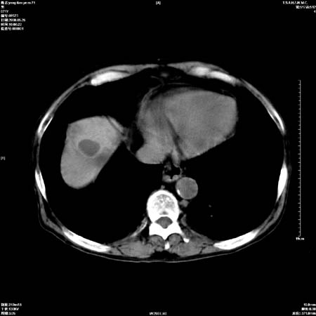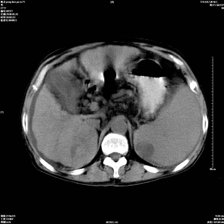 以下是引用正峰在2008-6-5 23:06:00的发言:[br][quote]以下是引用医影拾贝在2008-6-5 22:48:00的发言:[br]肝硬化、门脉高压、胃底食管静脉曲张、低蛋白血症(胆囊壁水肿、增厚)、腹水[br]脾功能亢进、脾大、脾、左肾囊肿[br]肝囊性占位、不除外肝脓肿可能[br]建议增强以除外肝右叶肝ca可能