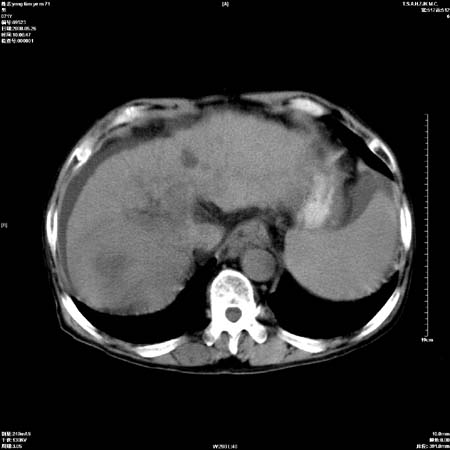 以下是引用chenglinhunan在2008-6-5 22:53:00的发言:[br]1. 肝硬化腹水,脾肿大。[br]2. 肝右后叶占位,肝癌。[br]3。建议ct增强扫描。
