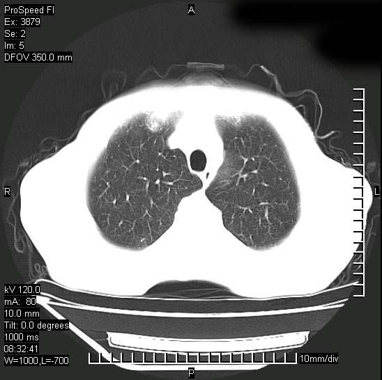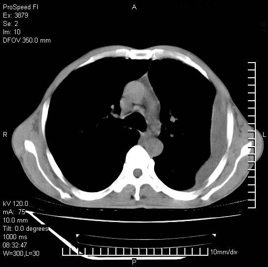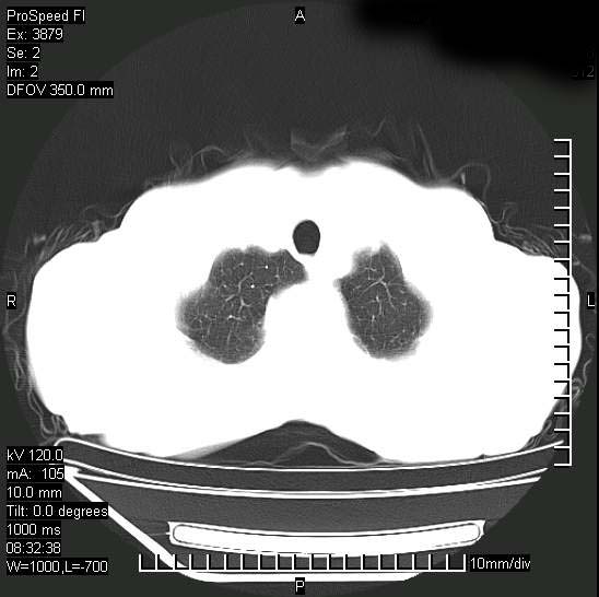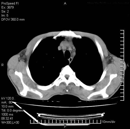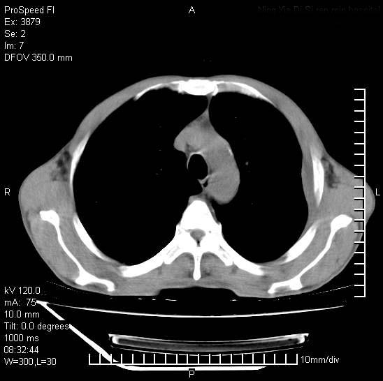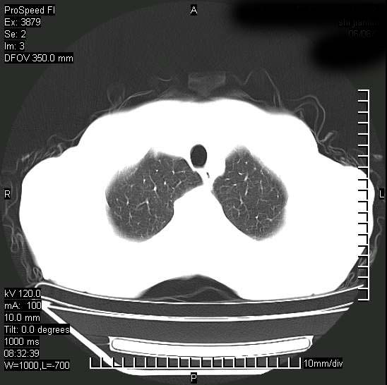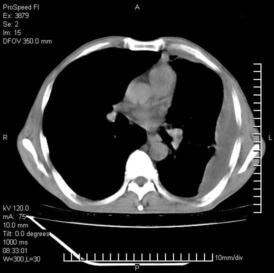 以下是引用312nanyang在2008-6-6 15:12:00的发言:[br]基本支持楼主意见[br]疑问?左下肺支气管旁的软组织(16层)密度怎么解释?淋巴结还是斜裂胸膜增厚所致?能否增强进一步检查