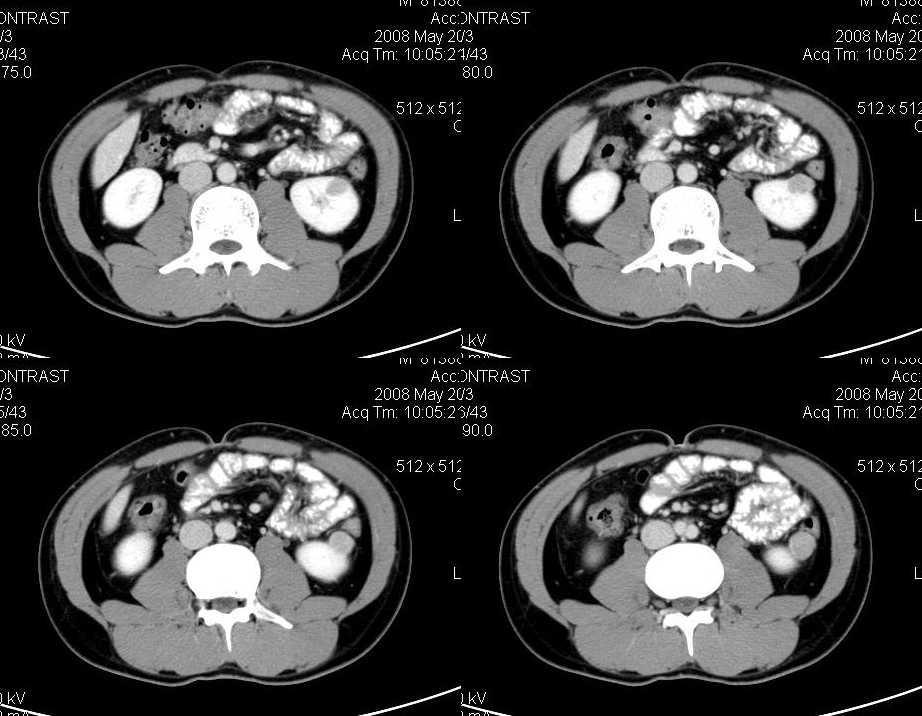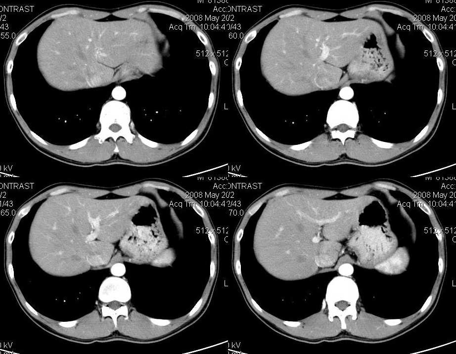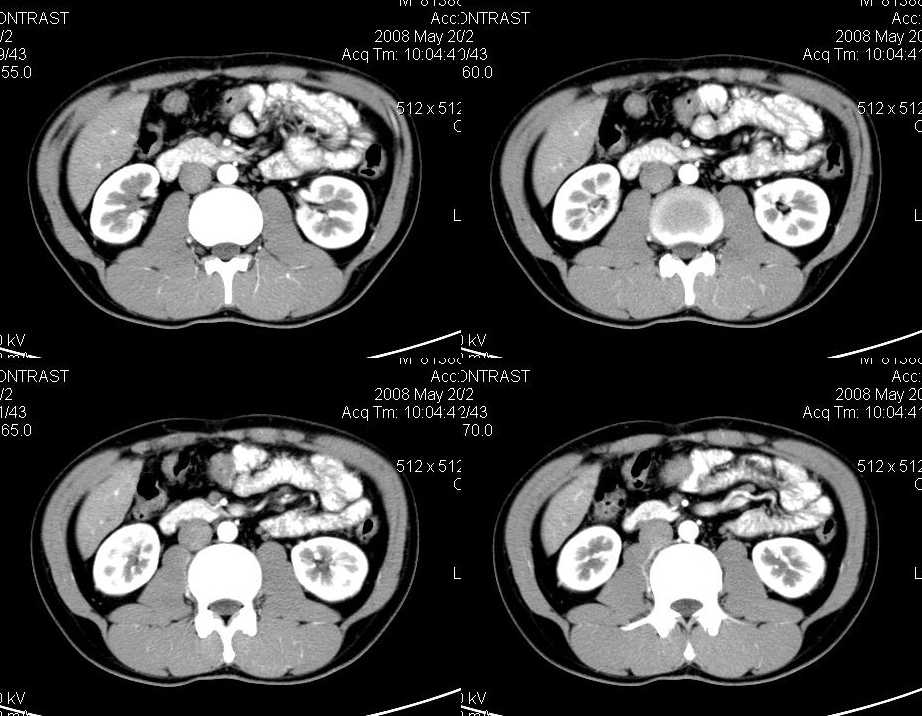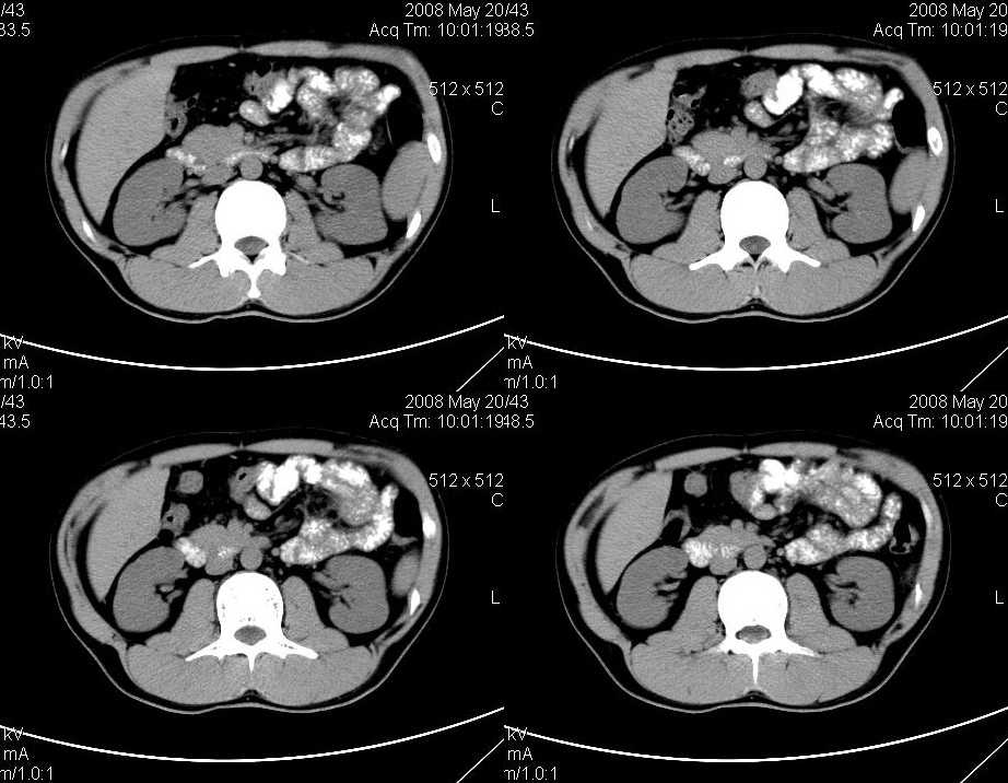 以下是引用liuyue在2008-6-7 15:28:00的发言:[br]典型的:肾癌。[br]动脉期强化明显,而静脉期密度明显降低,呈低密度。