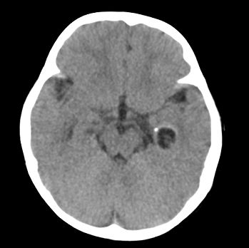 以下是引用jiangjing在2008-6-9 8:33:00的发言:[br]病灶周围见脑组织包绕,上部可见等或稍高密度壁环绕,壁且见小点钙化-----考虑皮样囊肿或表皮样囊肿可能
