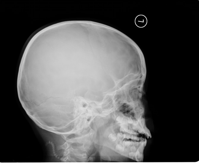 侧位不标准,左侧人字缝增宽,有外伤史吗?其他无明显异常。