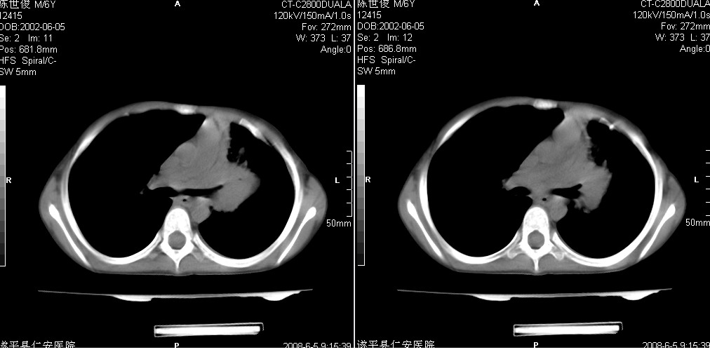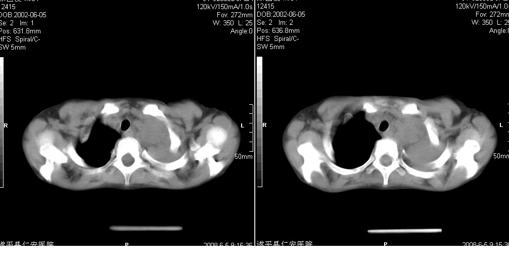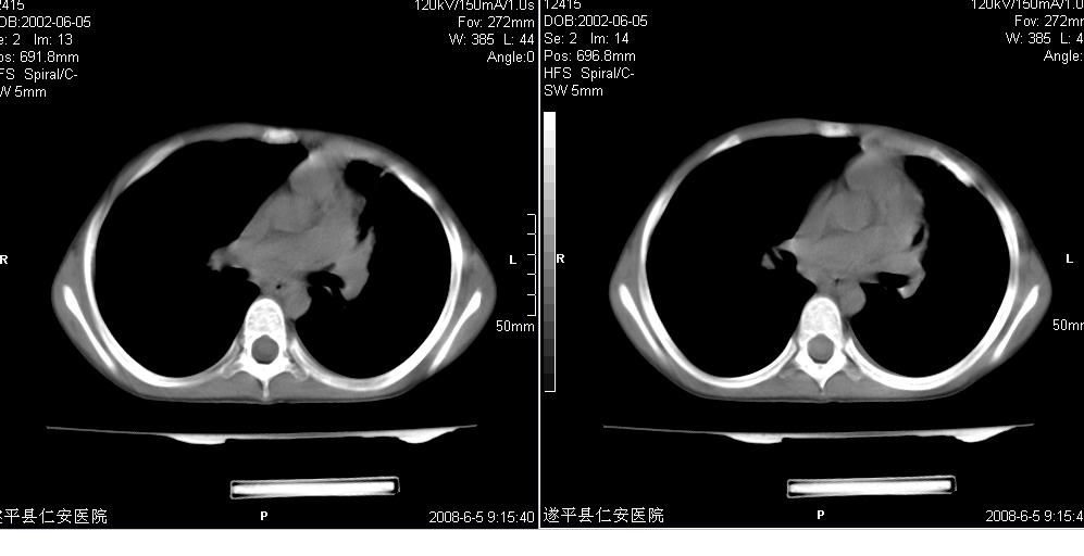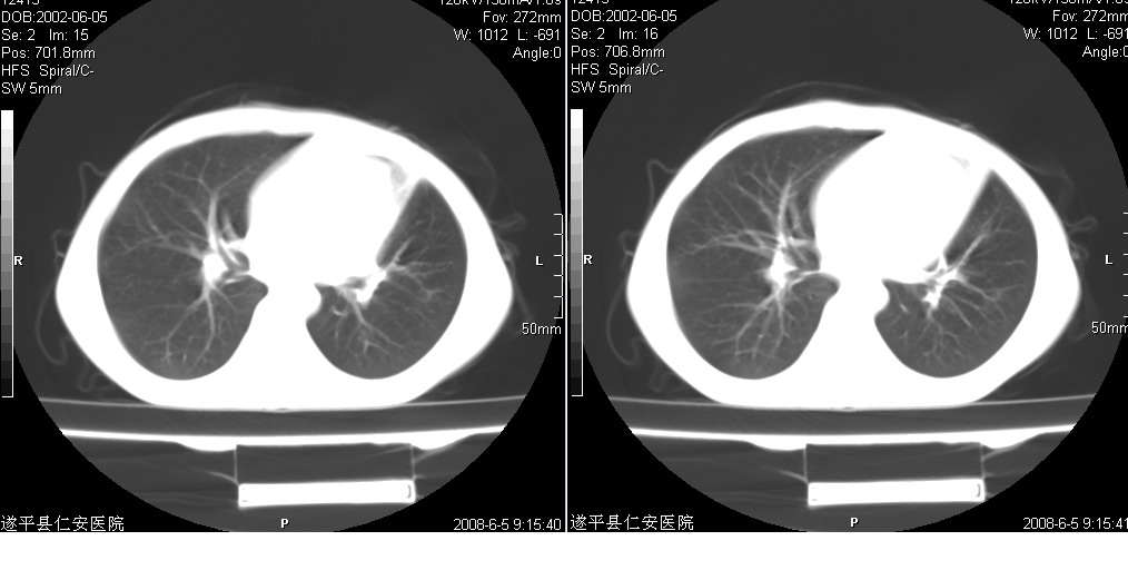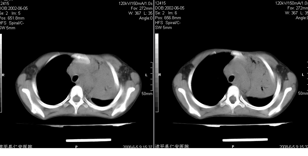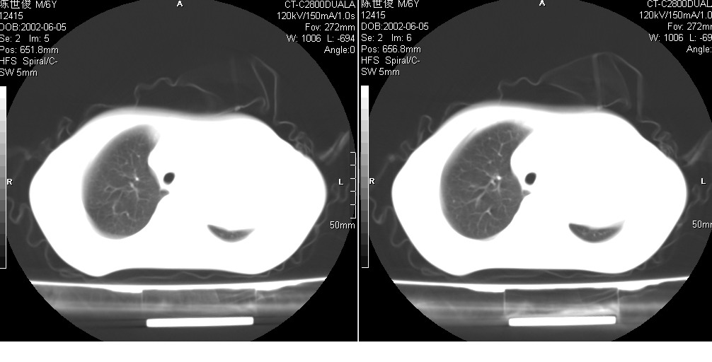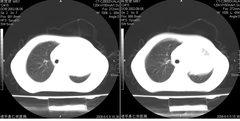 以下是引用xxhwh在2008-6-10 18:40:00的发言:[br]男,6岁,无规则发热一月余,体温在37.8——39度之间。一月前拍胸片示左上肺密度增高影,进行抗炎治疗8天,复查胸片未明显吸收。又改变抗菌素继续治疗半月,照胸片示病灶吸收不明显,行ct检查[br]征象:左上肺前段呈密实影,内可见支气管气像,远侧见絮状模糊影,中上纵隔左移。[br]意见:左上肺前段膨胀不全及感染,考虑为支气管异物或支气管内膜结核所致,[br]建议追问有无异物吸入史,行痰检及ppd检查