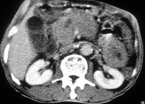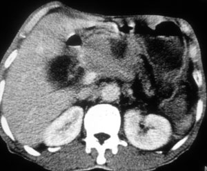 以下是引用liaoqiang在2008-6-13 15:20:00的发言:[br]1胰头区域肿块,胰管和胆管轻度扩张。肿块包绕肠系膜上静脉。考虑胰头癌可能性大。2胃底部壁增厚。