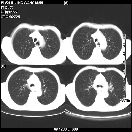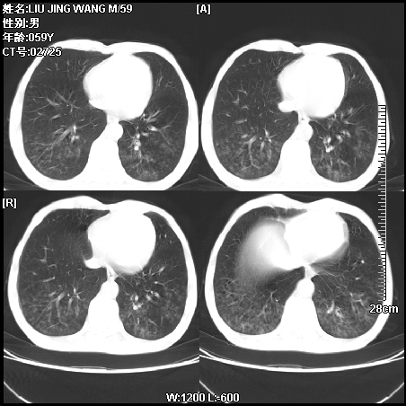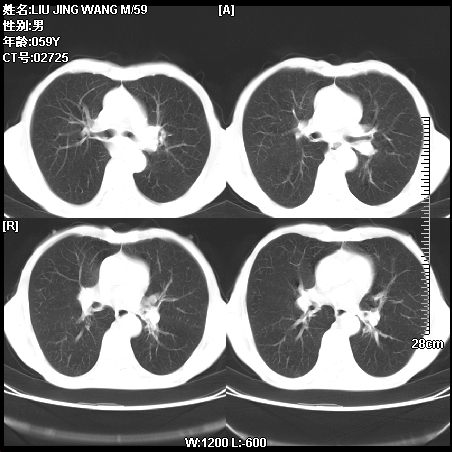 CT14028:M59Y,这两例两下肺病变相同吗?