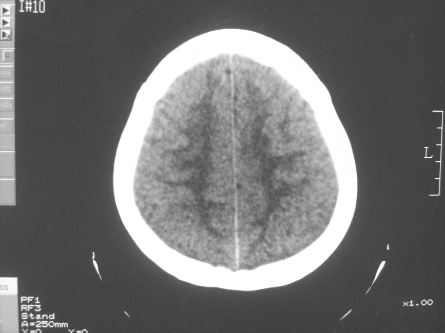 以下是引用zzyy在2008-6-16 10:13:00的发言:[br]两侧脑白质呈对称性密度减低,病儿有发热及脑膜刺激征。考虑急性病毒性脑炎。