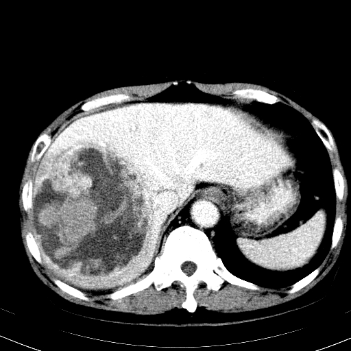 以下是引用hhcckk在2008-6-23 15:10:00的发言:[br]病灶内壁不光滑,中心高密度无强化,考虑肝癌内出血,最后两张横断面是延迟吗?病灶呈低密度。[br][br]鉴别:[br]1、脓肿,内壁光滑,不会发生出血[br]2、血管瘤,早期边缘结节样强化,可合并出血,但延迟后为等密度充填[br]