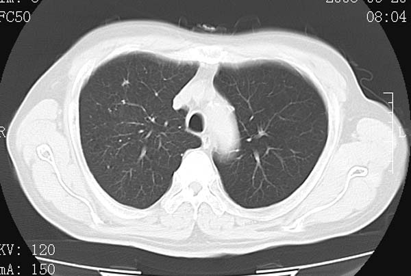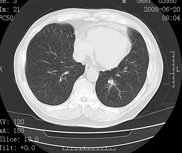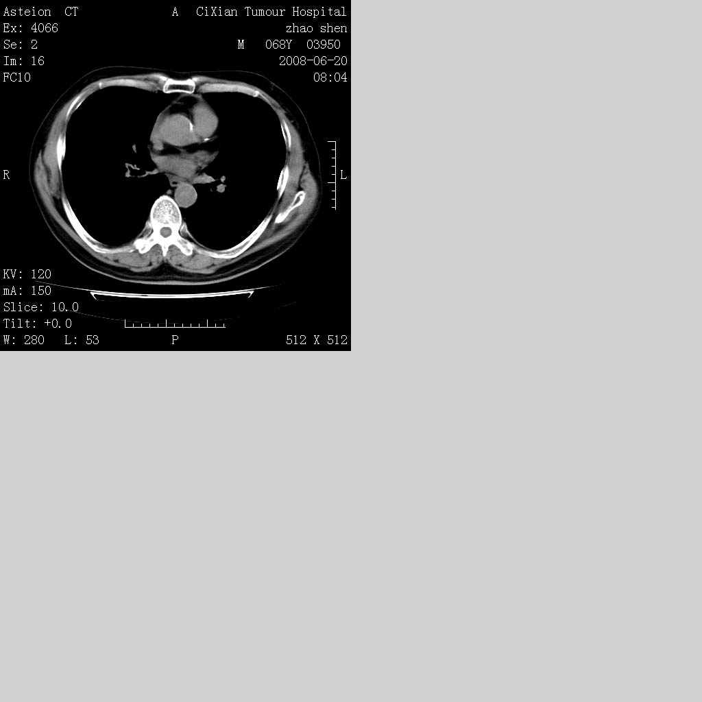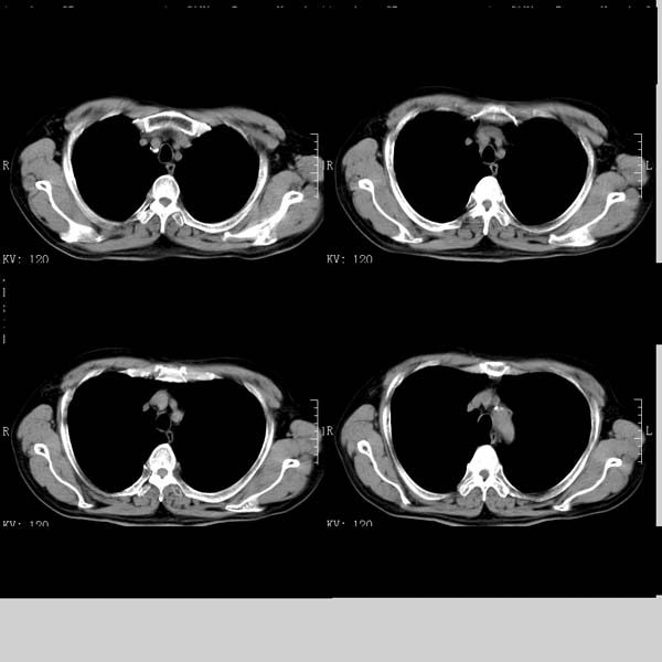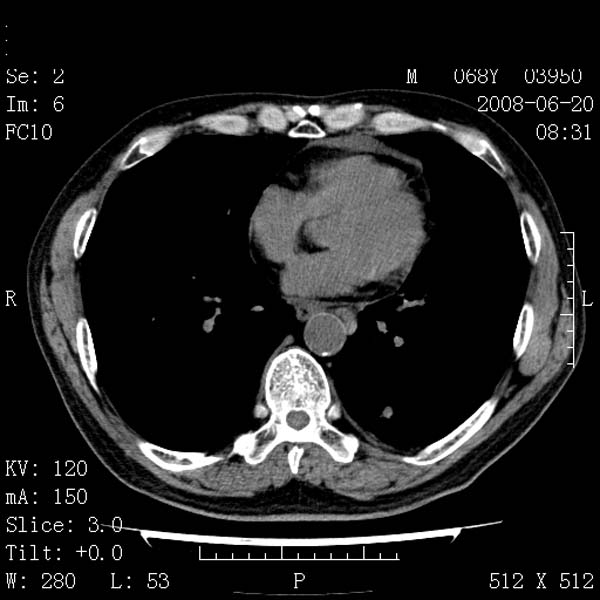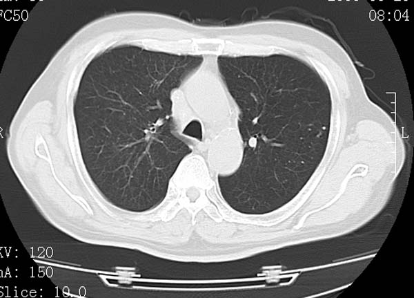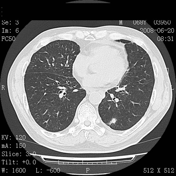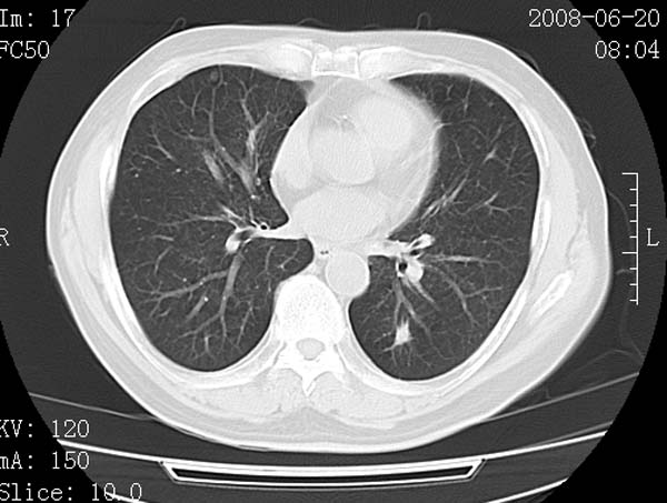 以下是引用zhangling在2008-6-24 14:56:00的发言:[br]我们科室意见报告为[br][br]1考虑左下肺周围型肺癌[br]2右肺小结节考虑转移瘤,纵隔淋巴结转移[br]3心包积液. [br] 各位老师分析的相当好 谢意[br]