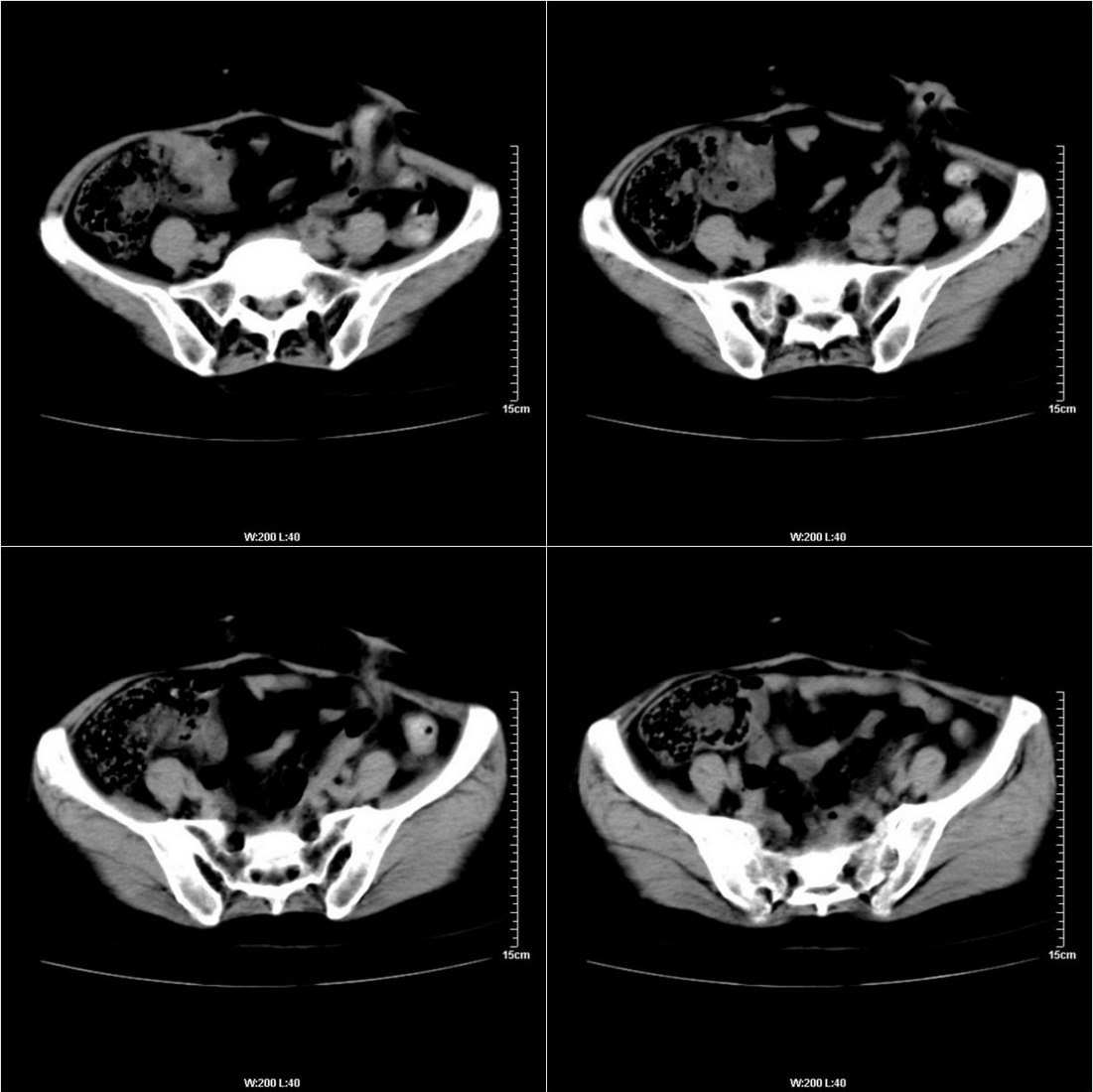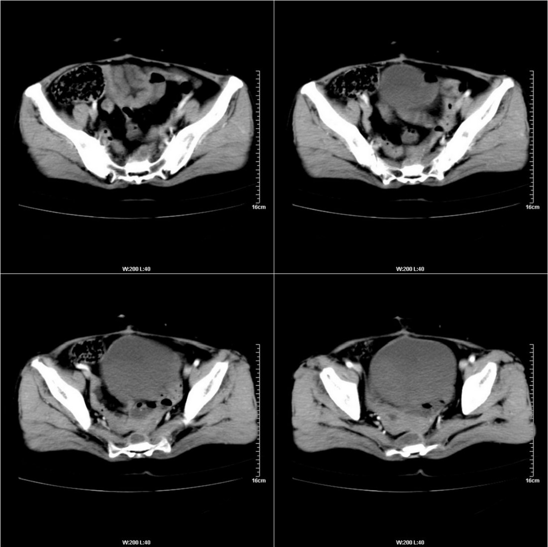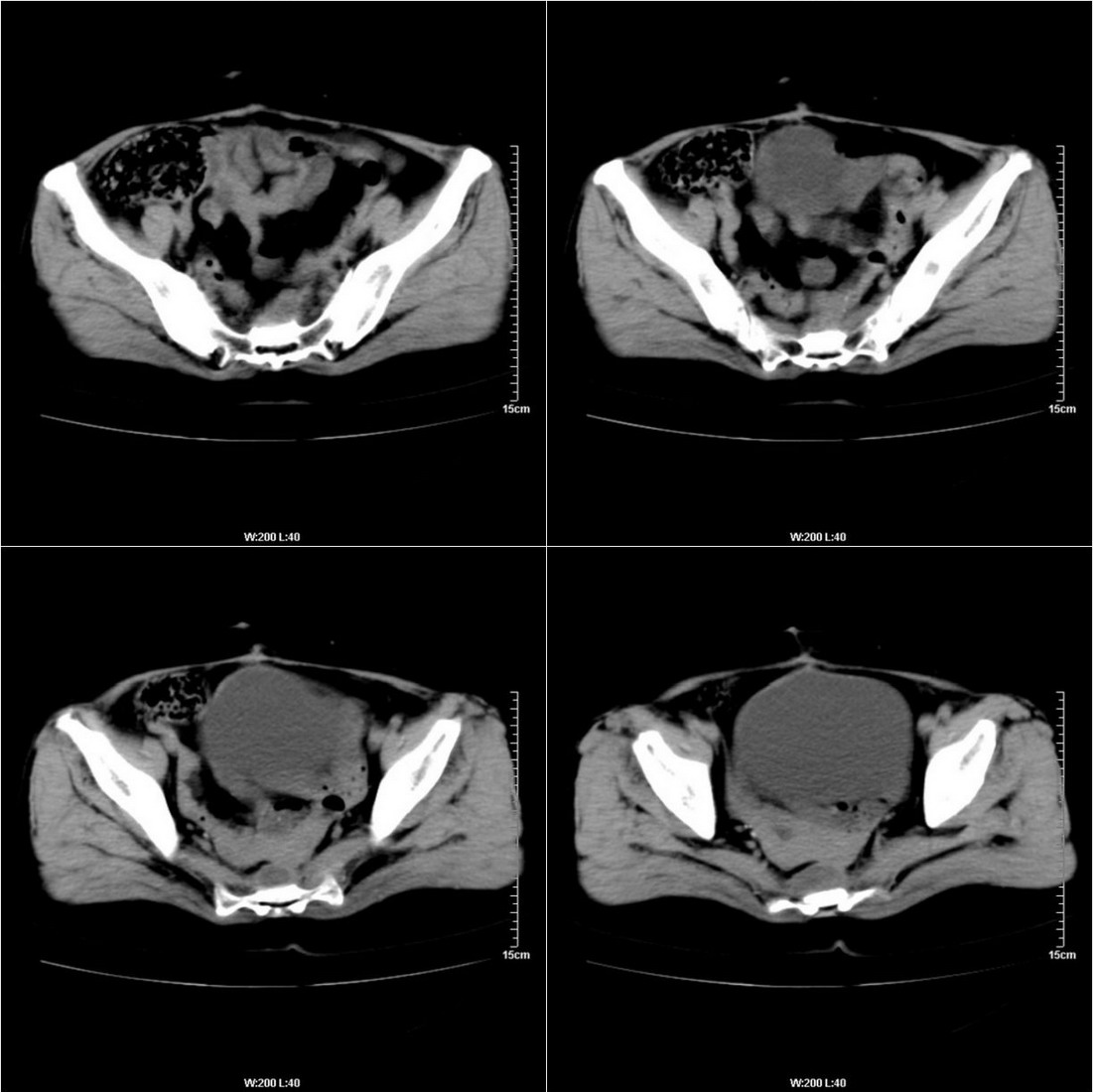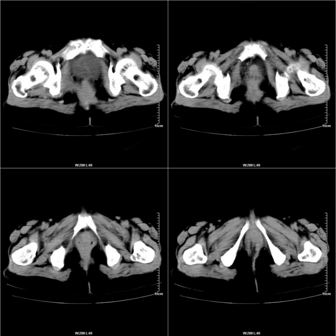 不知道病人的直肠癌手术方式如何,直肠已经全部切除,乙状结肠造瘘于左下腹,肛门应该也没有保留吧?如此,应该是复发了: