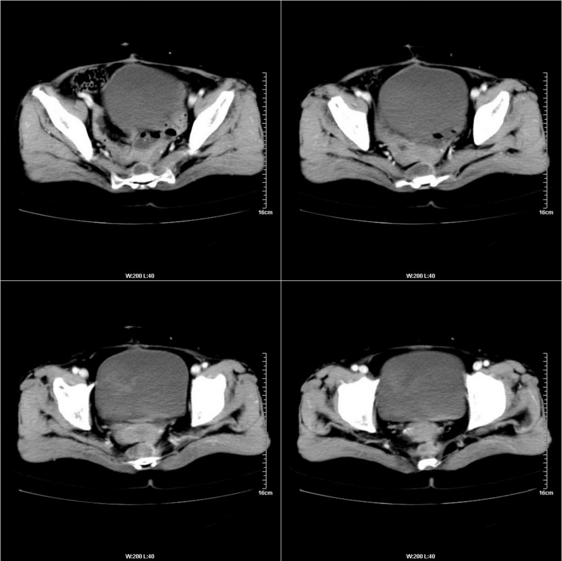 这个病例还出现了一个有意思的事情:膀胱内在增强的不同时期均有不同形状、位置的高密度出现,并不局限于输尿管开口附近。