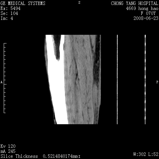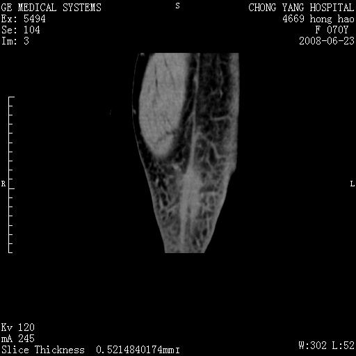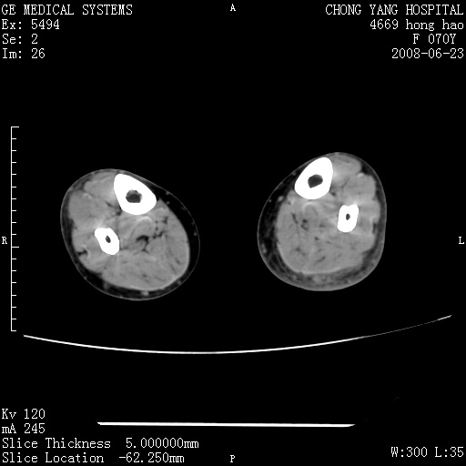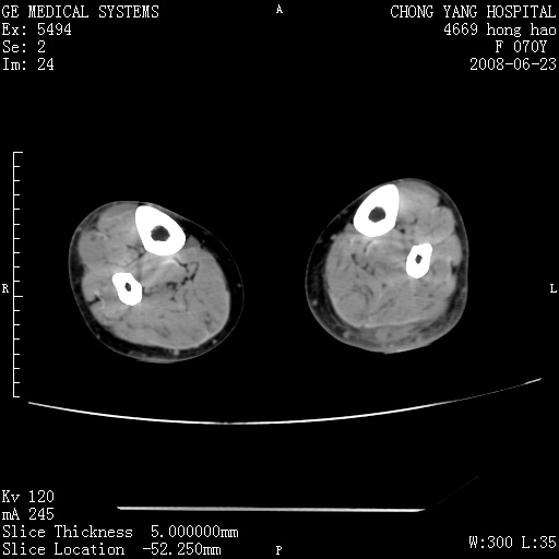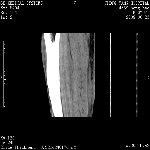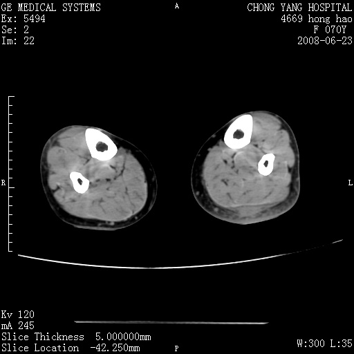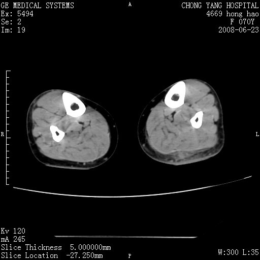 以下是引用peijunlong在2008-6-24 20:56:00的发言:[br]左小腿后方软组织皮下脂肪间隙见条片状密度增高影,范围较大,相邻皮下见条索影。[br]考虑:无菌性炎症可能性大[br]鉴别:主要与蔓状血管瘤鉴别,蔓状血管瘤也可表现为软组织内葡伏生长的扁平状的软组织密度影,但它的范围更大,且主要在软组织内,肌间隙中,皮下脂肪间隙内罕见。