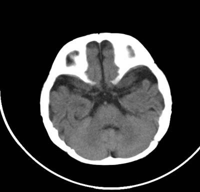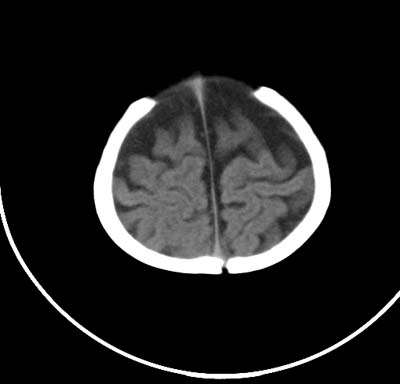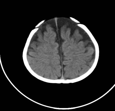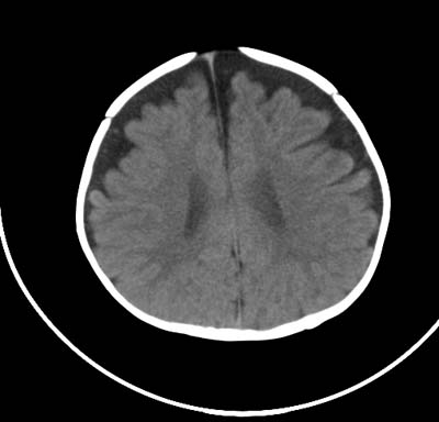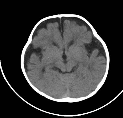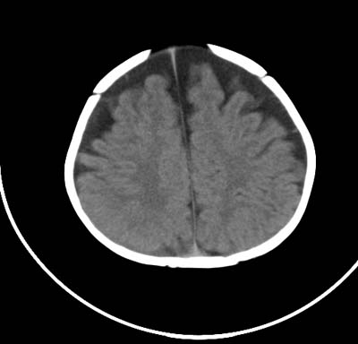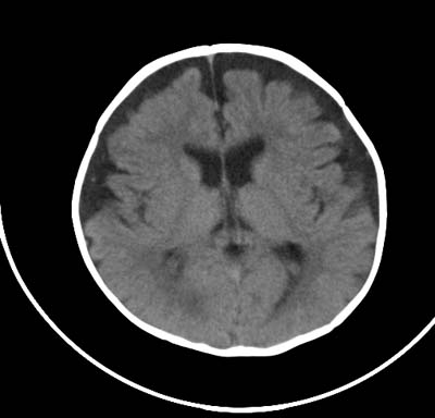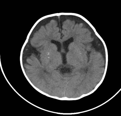 以下是引用影象小泰斗在2008-6-30 15:57:00的发言:[br]双侧额、颞部蛛网膜下腔增宽,纵裂加深, 支持外部性脑积水![br] 双侧基底节点状钙化!