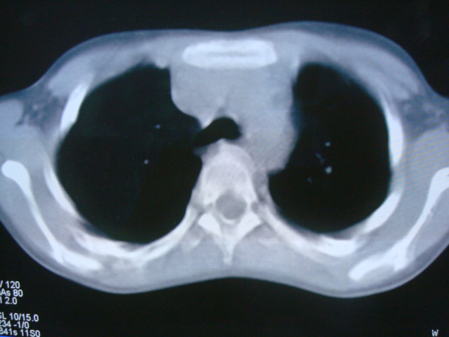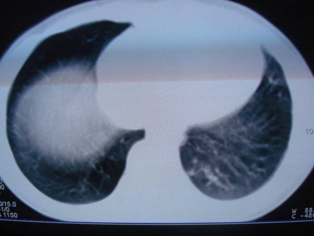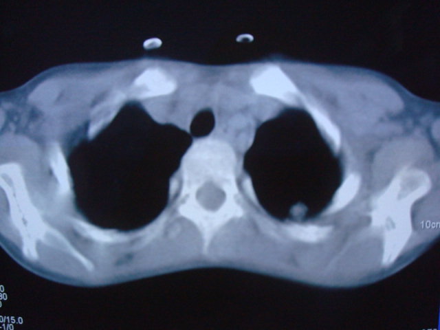 男,10岁,左胸痛,发热轻,血象高。后到省级权威医院治疗,病情明显好转,结果几天后公布。老机器,图像质量差,见谅。