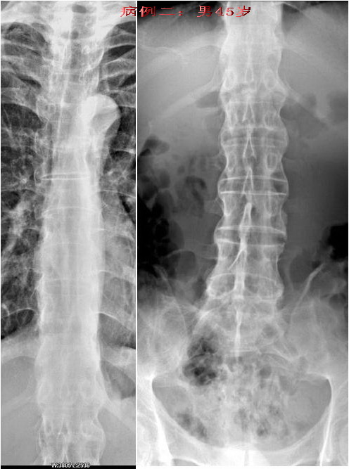 病例二:强直性脊椎炎晚期病例。