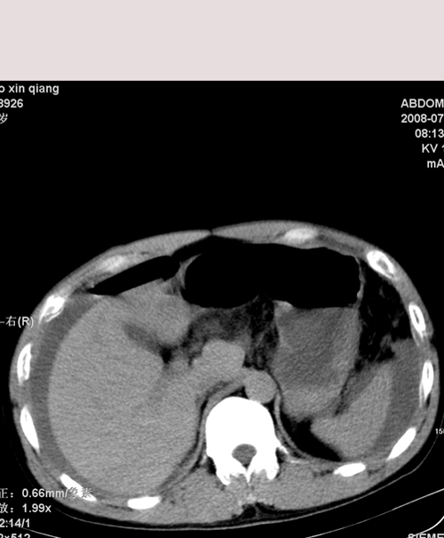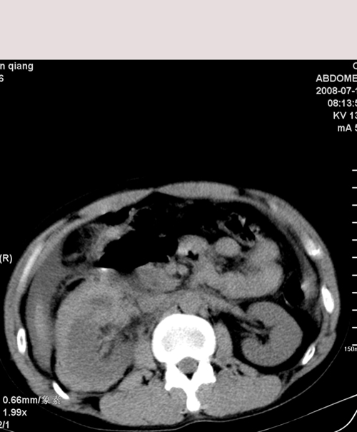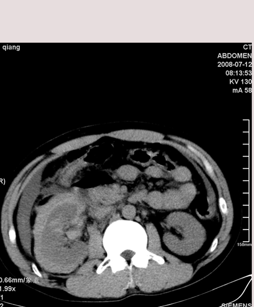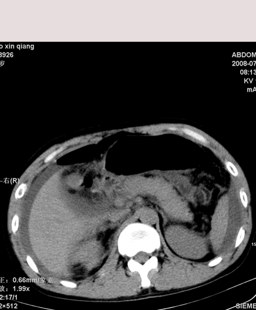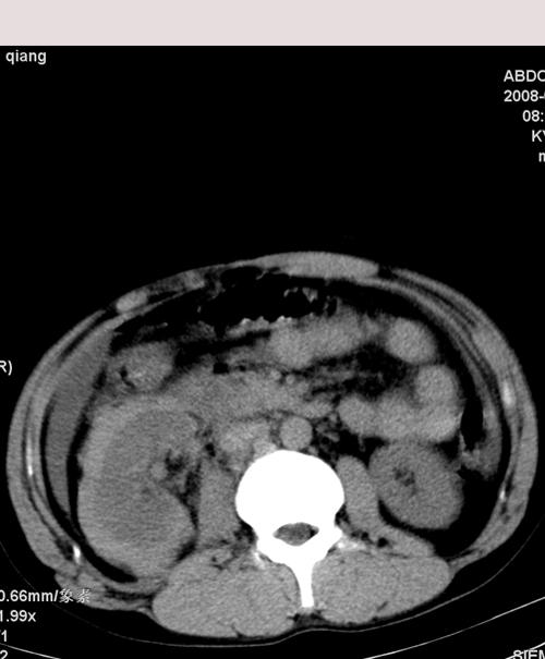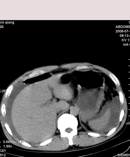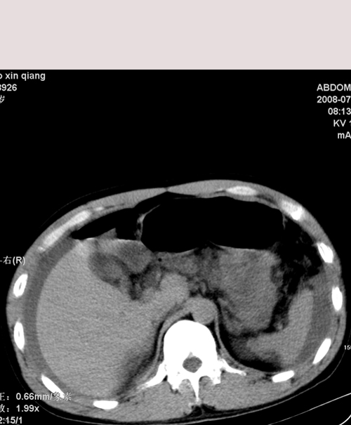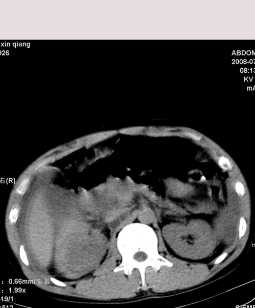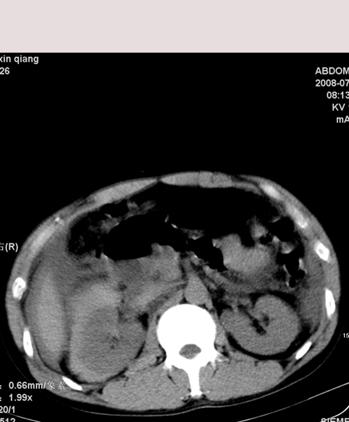 以下是引用yangyudong333在2008-7-15 12:06:00的发言:[br]考虑为:1)腹部空腔脏器穿孔。2)右肾破裂并肾包膜下血肿,肾盂积血。3)腹水(血)。