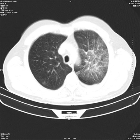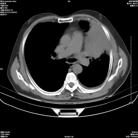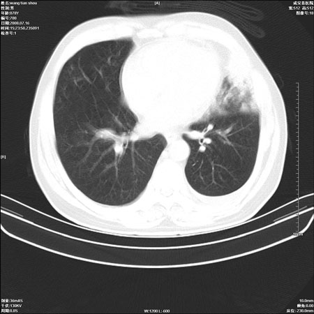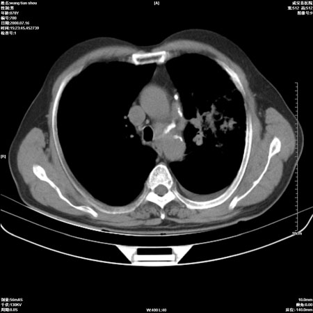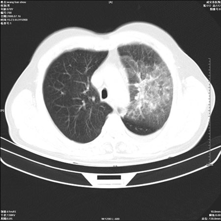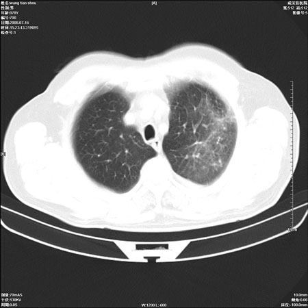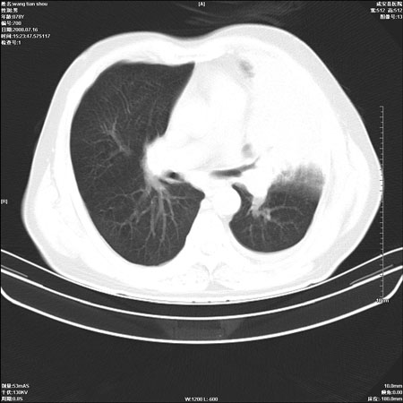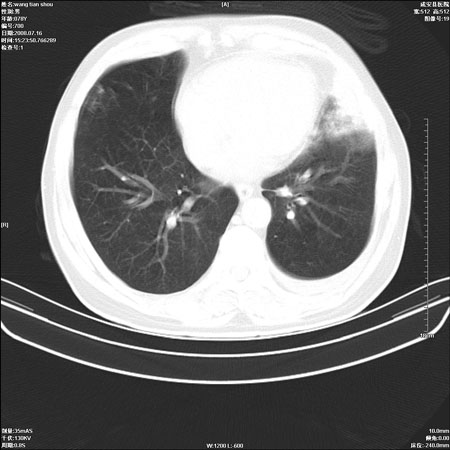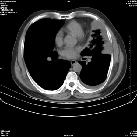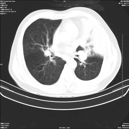 以下是引用qingjing在2008-7-16 19:55:00的发言:[br]1、左上肺不张并堵塞性炎症,建议支气管镜详查;[br]2、左侧胸腔少量积液。