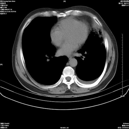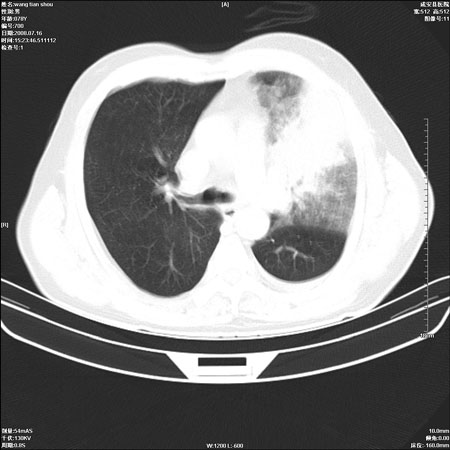 以下是引用wzr在2008-7-16 20:26:00的发言:[br]左肺肺不张伴阻塞性肺炎!另:左侧胸腔少量积液。建议纤支镜检查!