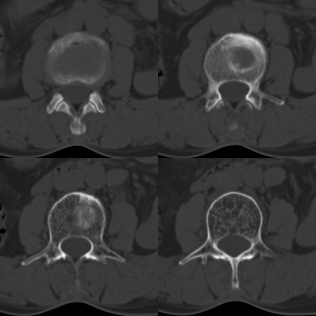 1、腰3椎体斯莫氏结节;2、腰椎骨质增生。