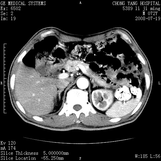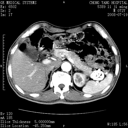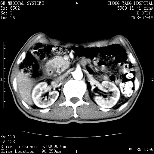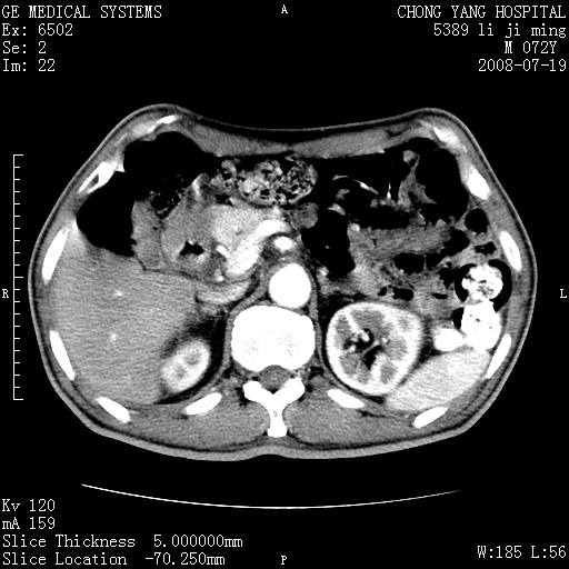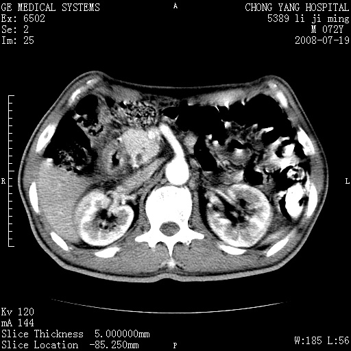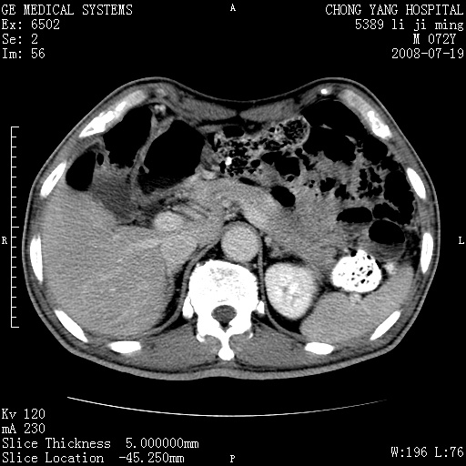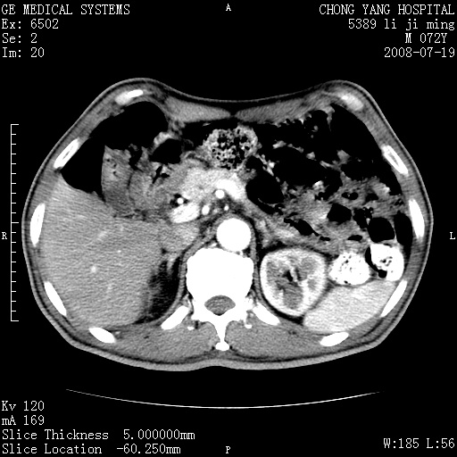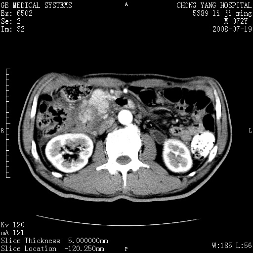 以下是引用yangyudong333在2008-7-20 6:56:00的发言:[br]胰腺增大尤以胰头明显,边缘模糊,周围可见渗出影,右侧肾前筋膜增厚,肠管於涨.支持胰腺炎