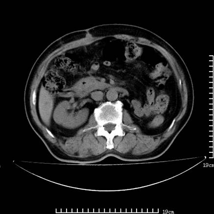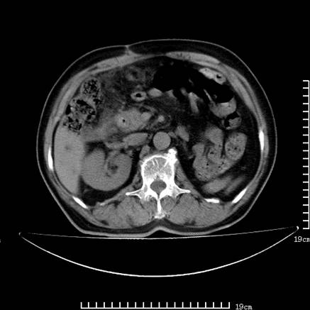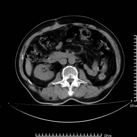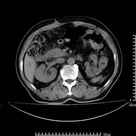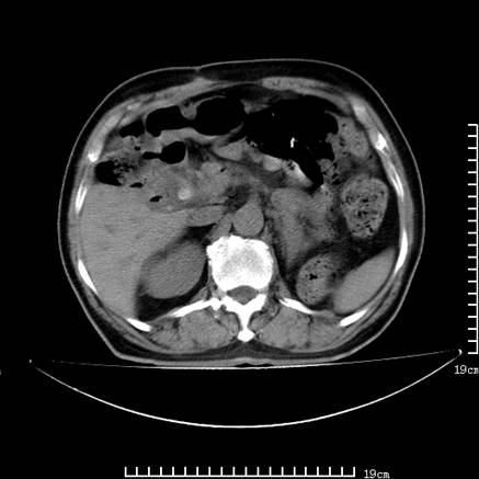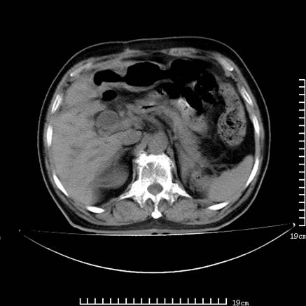 以下是引用lirenxiong在2008-7-19 22:01:00的发言:[br]胆总管结石并胆系感染,胆囊切除术后改变!左肾未见!左肾上腺增生肥大?请全腹扫描,增强!